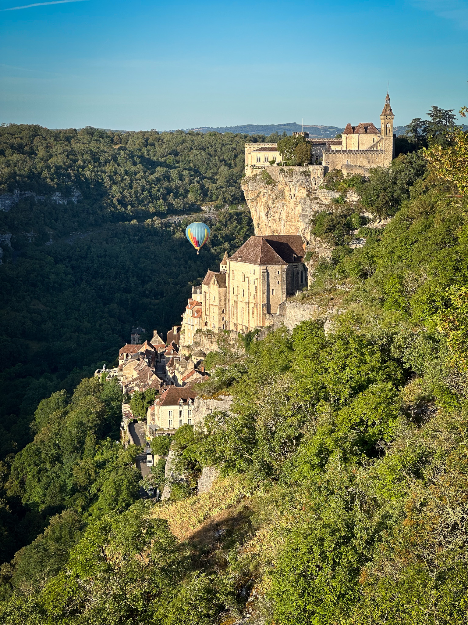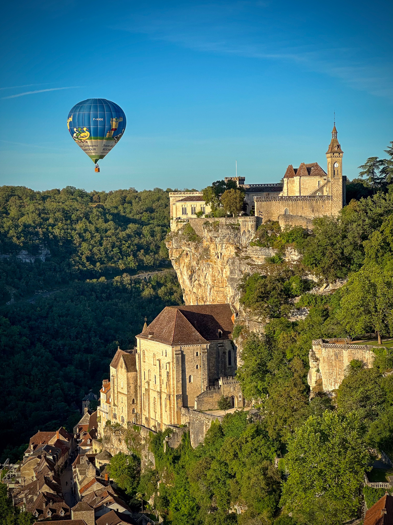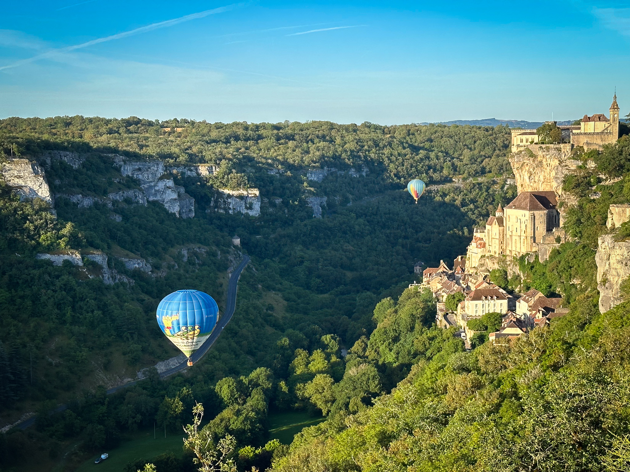 The next day Nigel’s usual early morning walkabout rewarded him with the sight of two hot air balloons drifting down the Alzou river valley before rising in front of Rocamadour to pick up the breeze and disappear over the horizon.