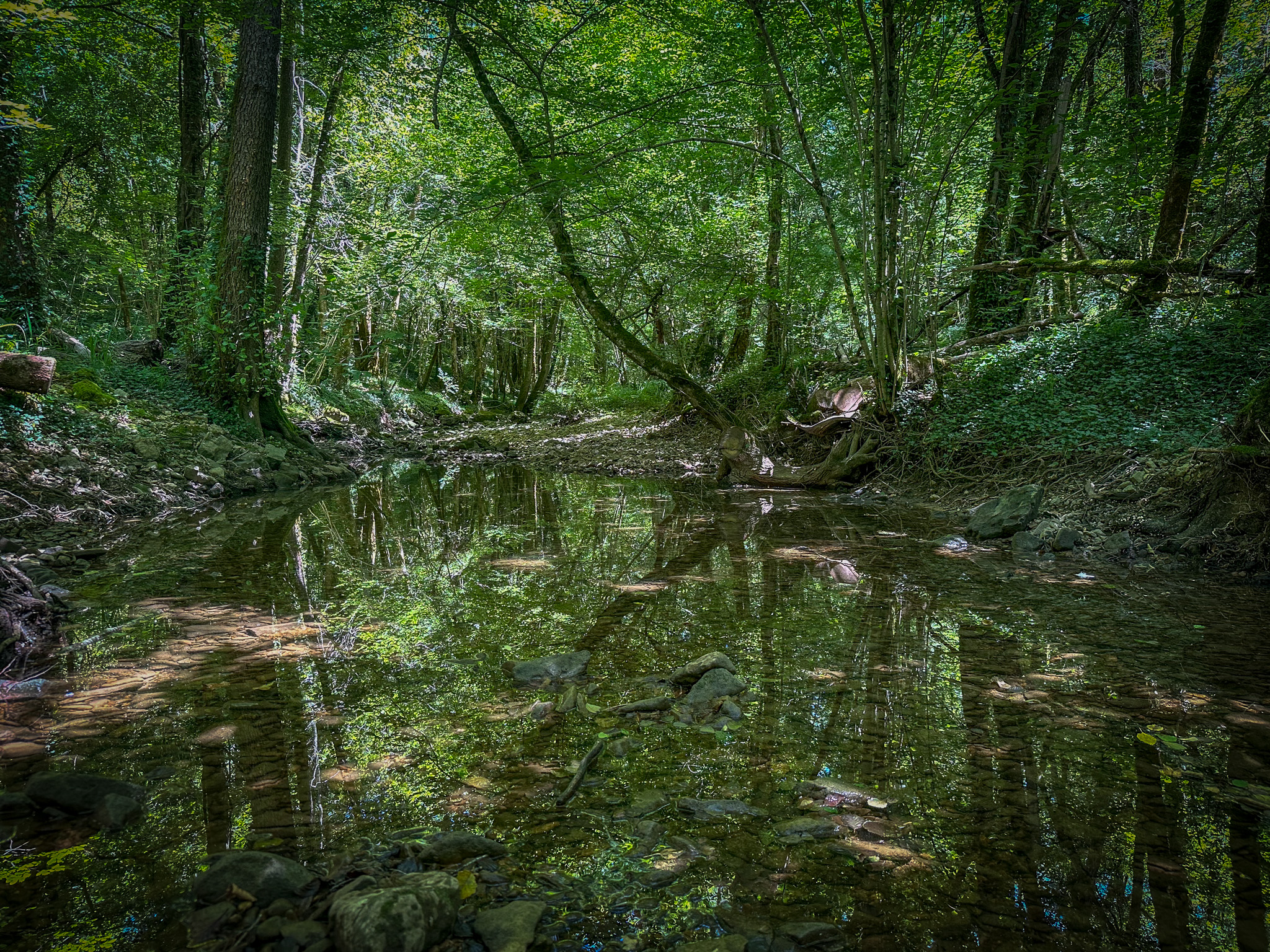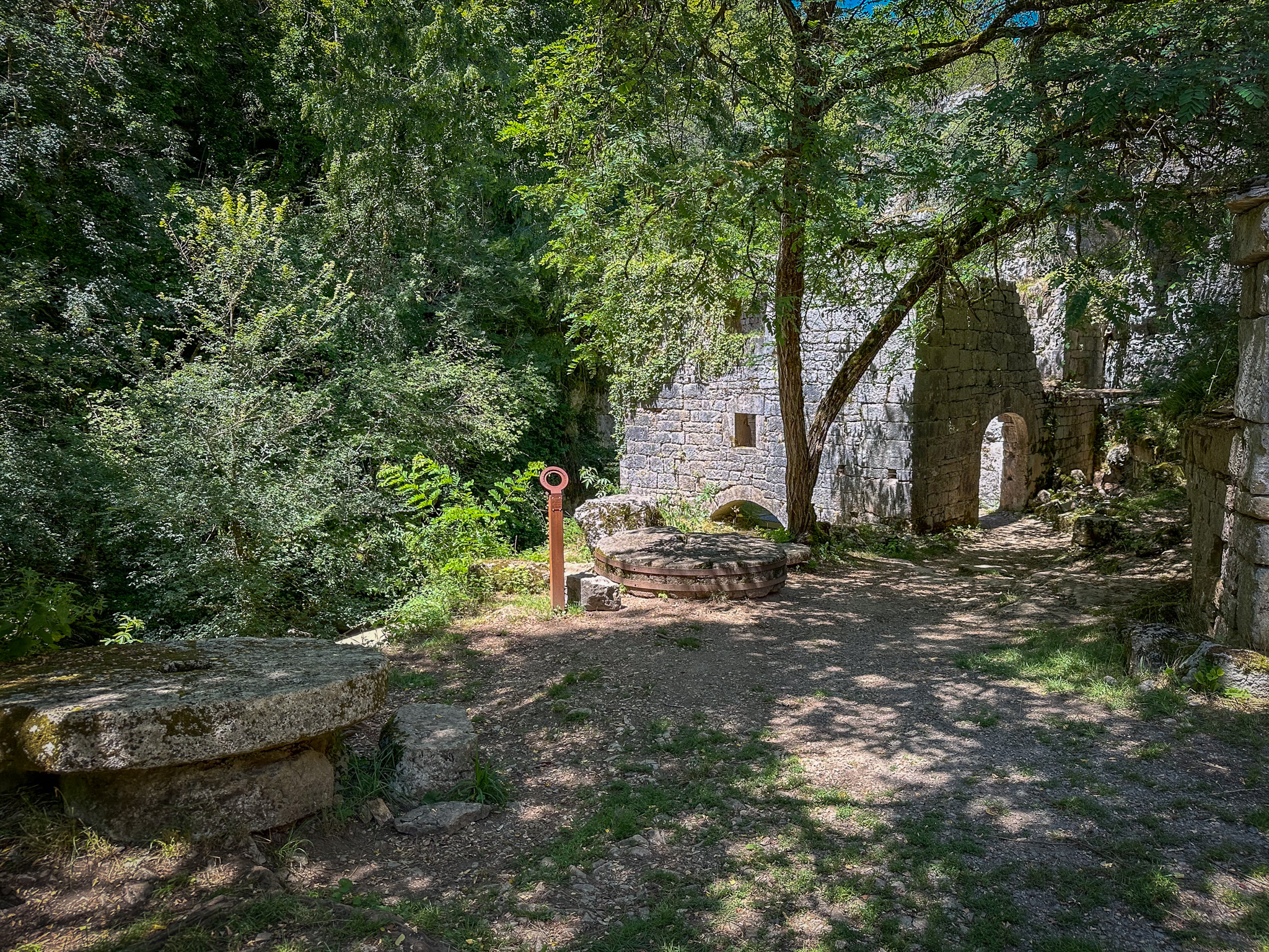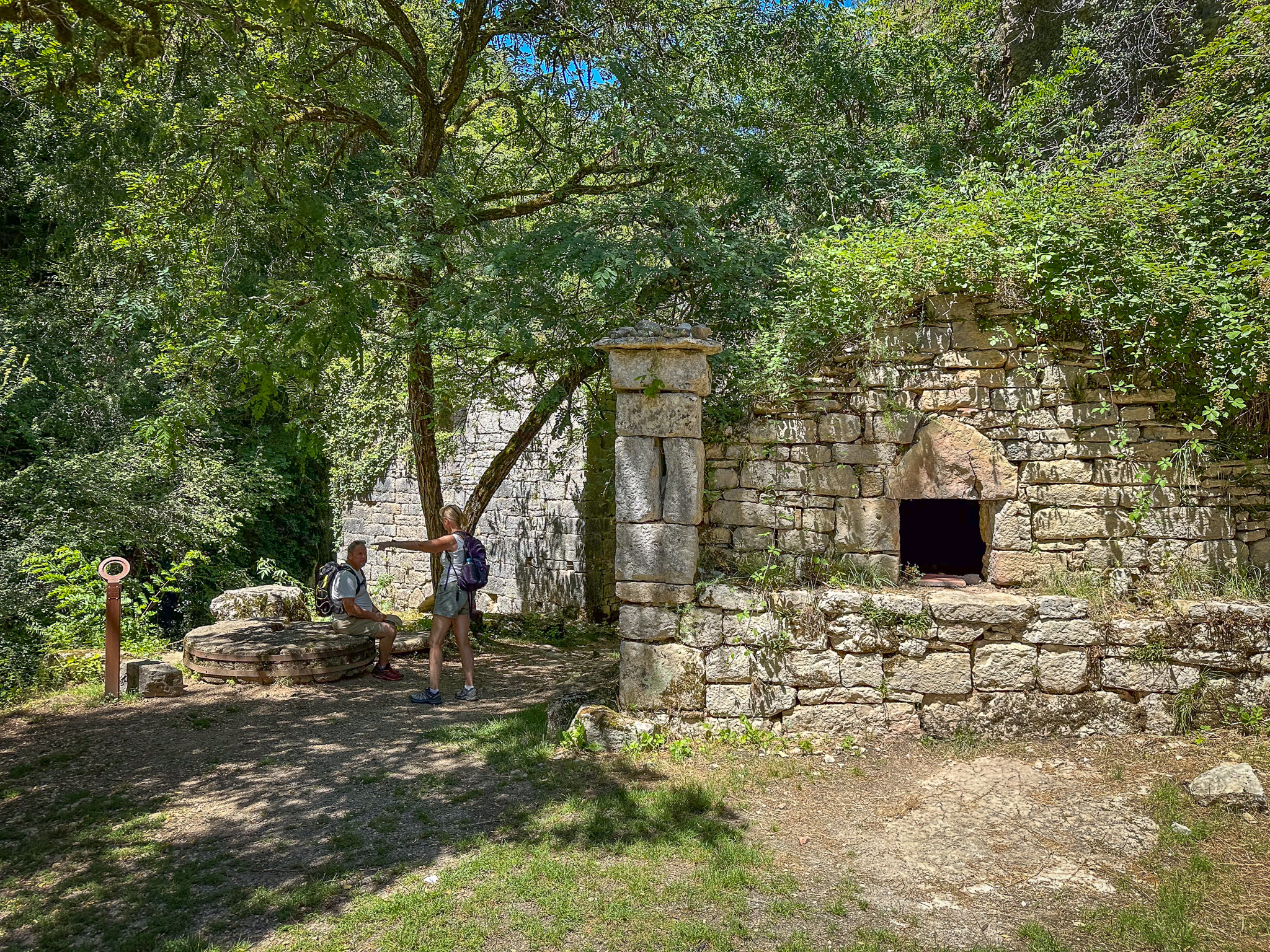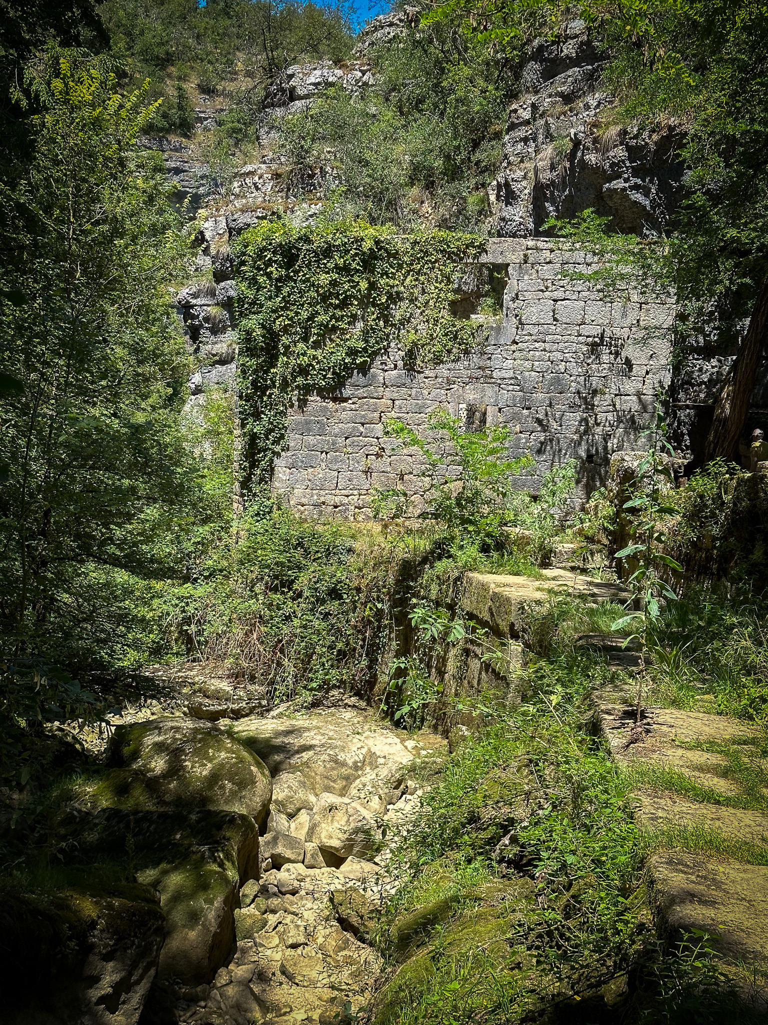 We had optimistically packed swimming togs in the hope of a refreshing dip in the river that we were to follow on our return route. The map indicated numerous ruined watermills which clearly meant that there must be water somewhere.