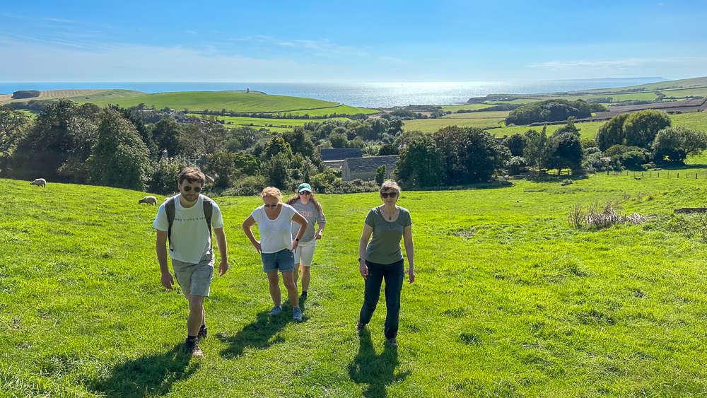 Sue’s sister, Sarah, and her adult ‘children’, Frances and Gregor joined us for a week after they had holidayed in St Ives – a place of many fond memories for the Mooney clan. Thankfully, Claire was able to be there for much of the time too. More walks around Wareham and the forest and another good walk on a different section of the coast path were in order, this time with refreshments at the half-way point. The walk was an essential health activity given that we were being treated to Frances’ exceptional skills as a pastry chef each day! Two highlights were a delicious streuselkuchen made with some of the blackberries for which Nigel had foraged and an absolutely heavenly salted tequila and Grand Marnier slice. Many more walks will be needed!