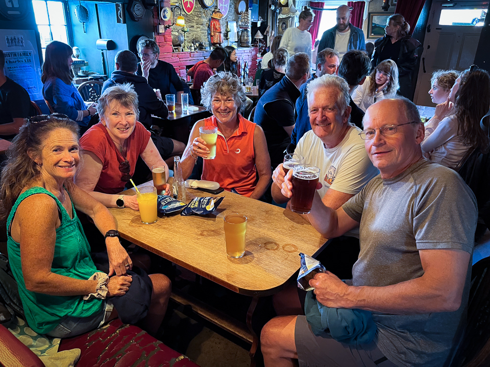 We travelled to Kingsbridge on the South Devon coast to meet up with Chris Booth, a friend from university days and his wife, Clare, whom we had never met. We had not seen Chris since we were together at the wedding of another university friend Pete Satchwell and wife Philippa about 36 years ago. So it was entirely appropriate that Pete and Philippa joined us at Chris and Clare’s home for a fabulous weekend of reminiscing, walking, boating and planning for the next get together – Pete and Philippa’s home in the Cotswolds next year.