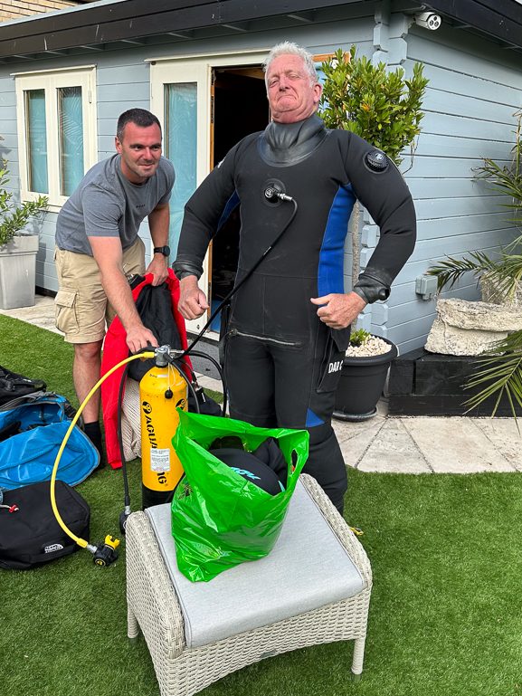 The English summer weather conspired to prevent Nigel from diving. It seemed that whenever Sean attempted to arrange a dive outing the wind picked up. Trying on a dry suit was as close as Nigel got to revisiting any of our old dive sites.