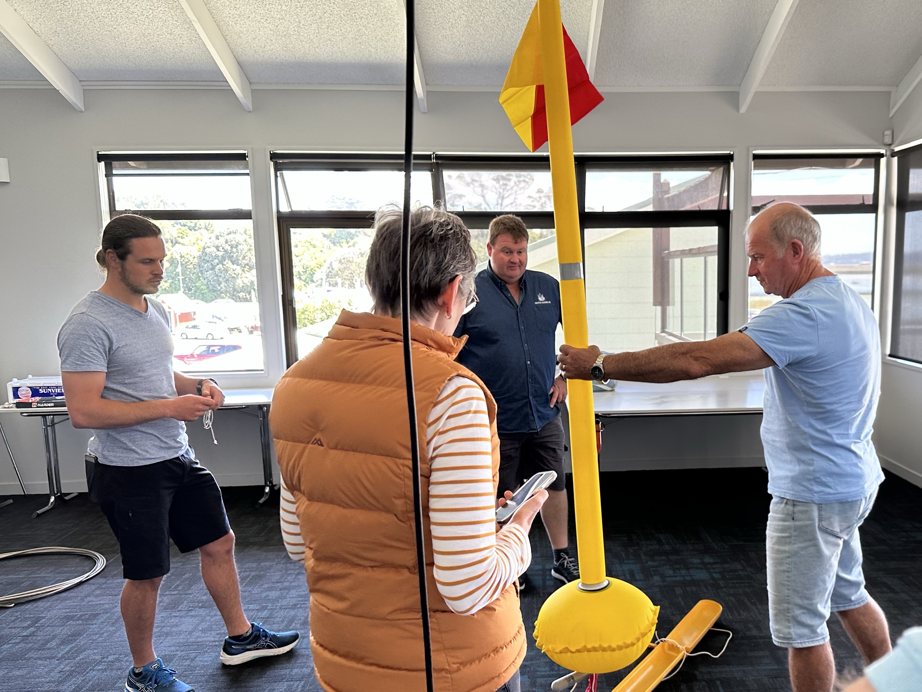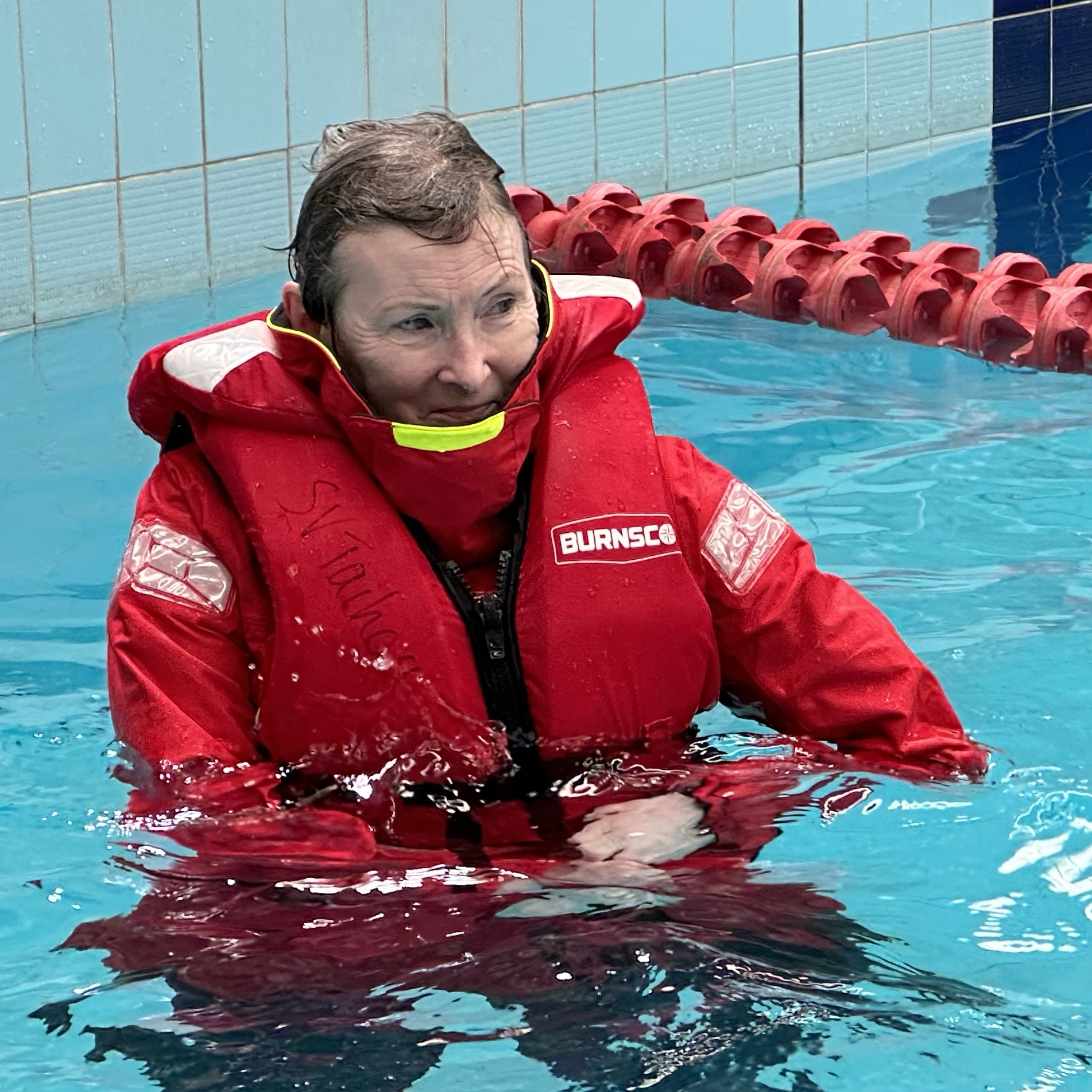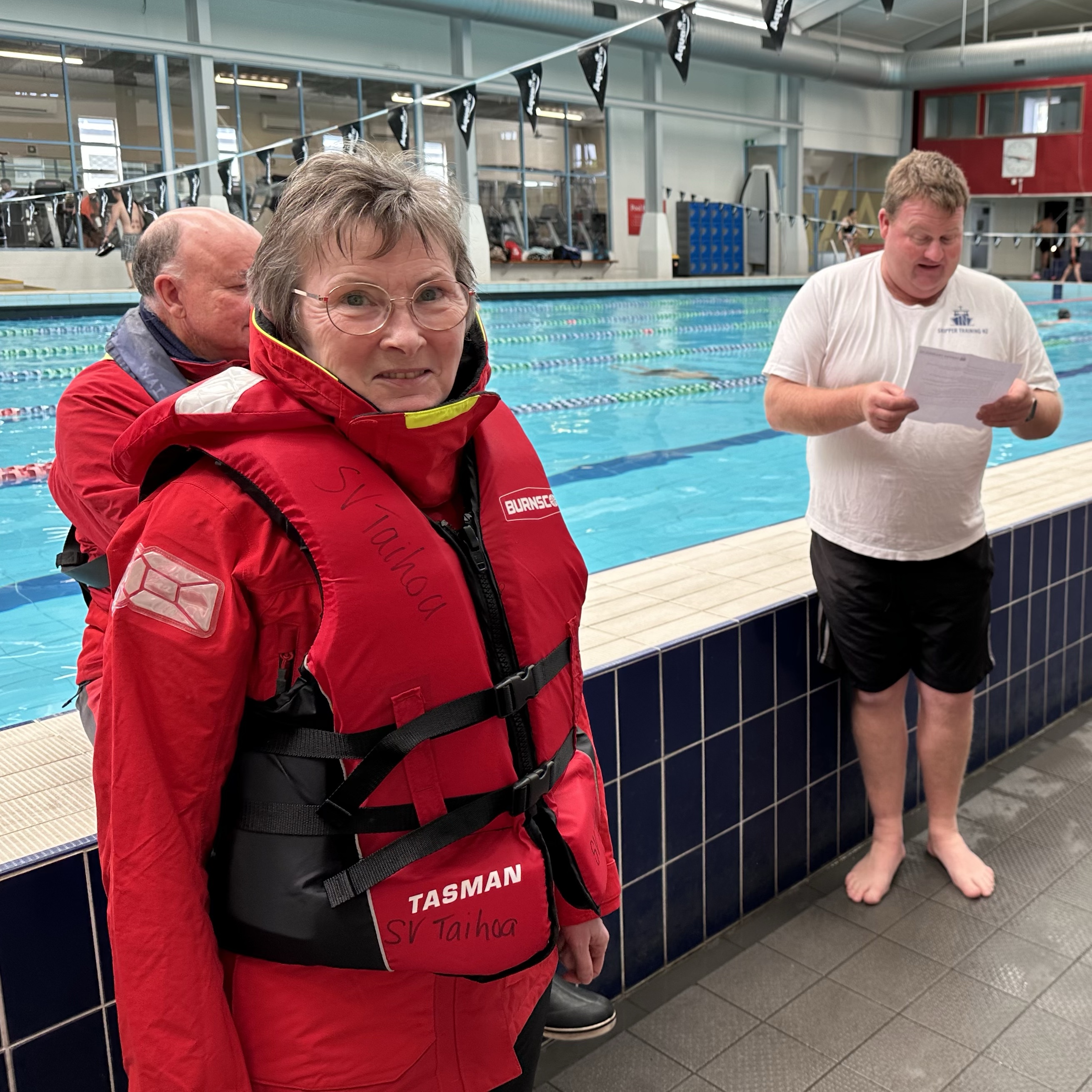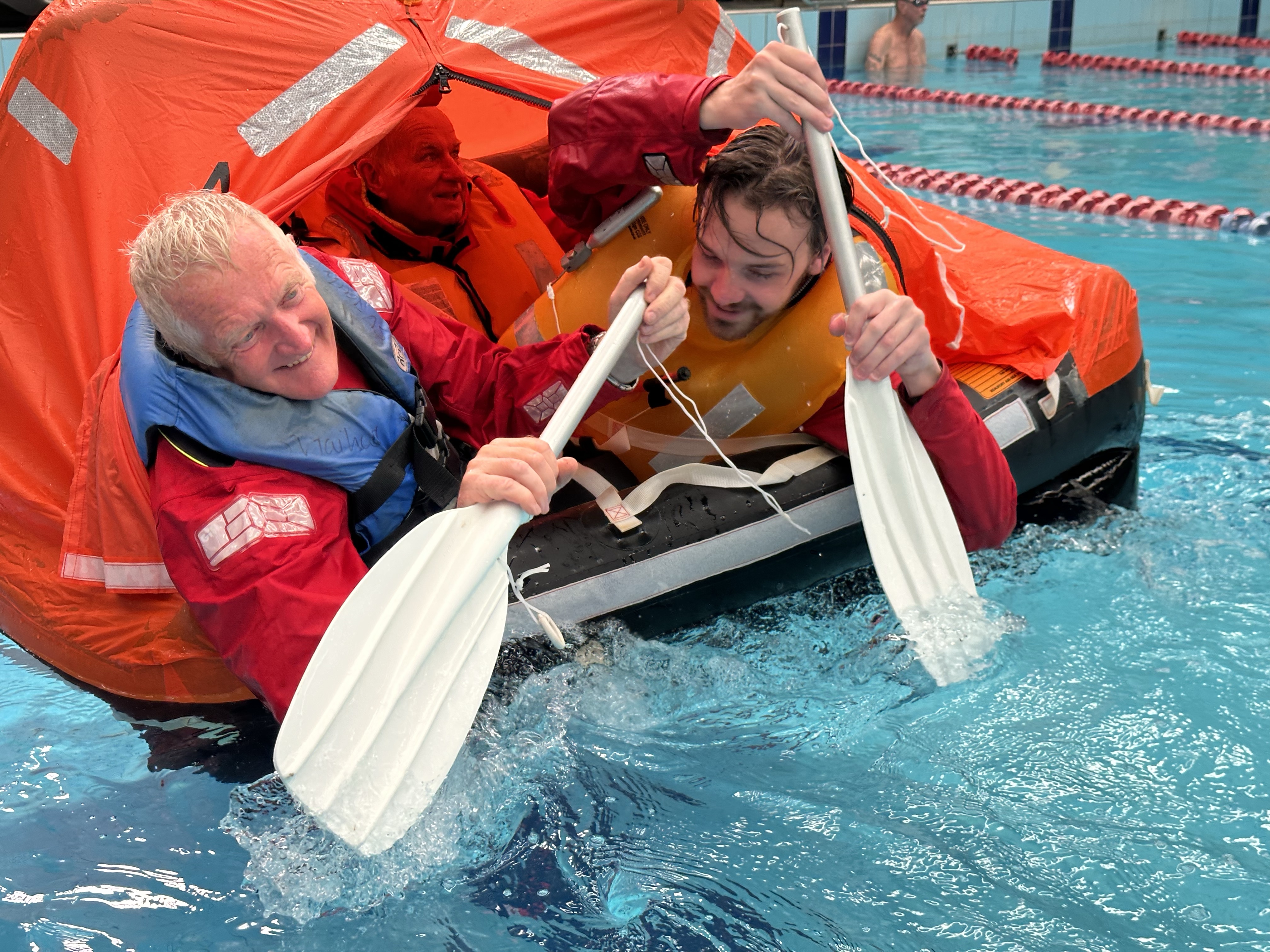 The course was a fabulous mix of theory, discussion, demonstration, hands-on use of safety equipment and practical exercises in a swimming pool using a real life raft while wearing our full wet weather gear.