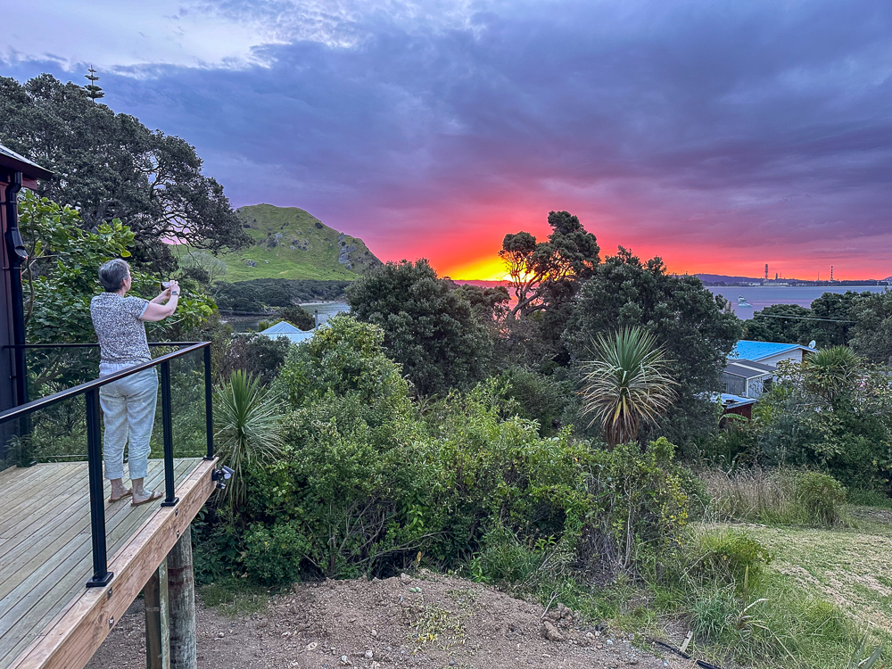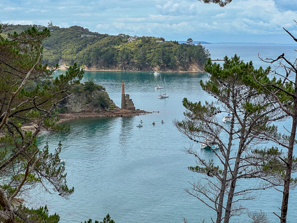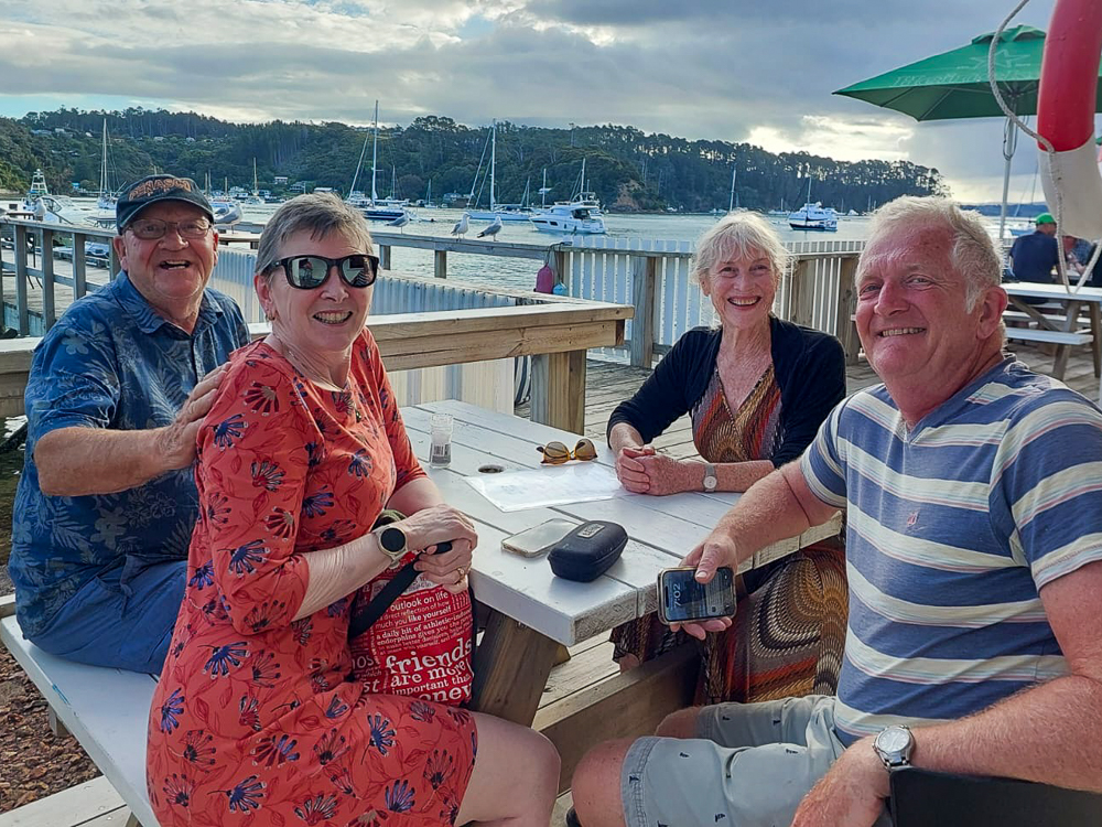 The 5,000 acre island is one of the largest in the Hauraki Gulf with numerous walking tracks and a rich history. We explored the tracks leading to the famous Mansion House in Mansion House Bay and around the former mine pump house. Linda and Ken have a genuine kiwi batch on the hillside above Bon Accord Harbour. In true kiwi style the original single room has been added to over many years to give them an additional bedroom and bathroom and a deck with a spectacular view from which we enjoyed a memorable dinner.