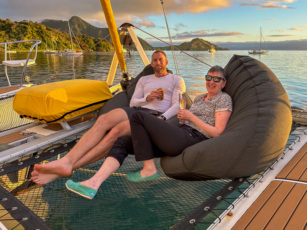 The addition of bean bag seats and the BBQ installation were much simpler projects and far more successful. We can now have pizza whenever we want and relaxing sundowners on the bow.