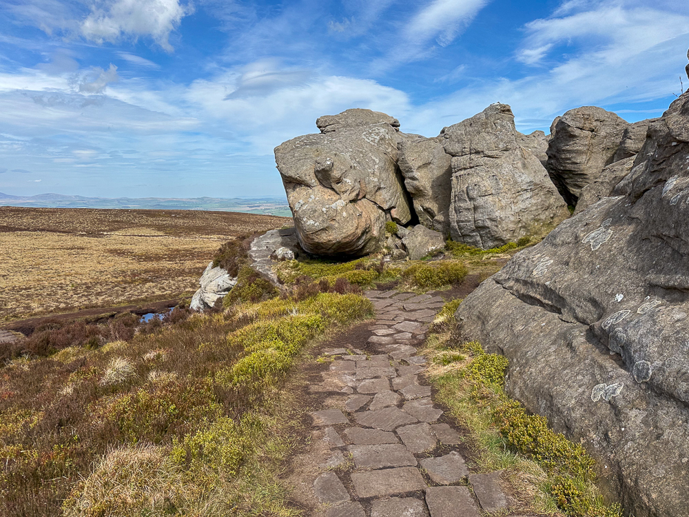We had another fabulous day of walking at Simonside near Rothbury in Northumberland. We walked while Eric and Christine visited Rothbury. All went well until Christine drove back to collect us. She hit one of the potholes that English roads are apparently becoming infamous for, shredded a tyre and then couldn’t find her phone to let us know what had happened or do anything about it. We eventually found them and discovered that, like many modern cars, theirs had no spare wheel. We also discovered that the roadside assist cover had expired a few weeks earlier. So it was several hours later that a very competent tyre repair man turned up, replaced the tyre, balanced the wheel and, in no time at all, had set us on the road again.
