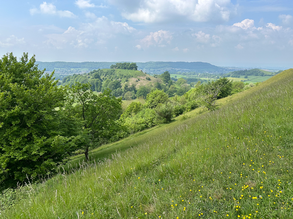 Sadly Clare could not join us so it was left to the five of us to enjoy a fabulous walk around Uley Bury Hillfort on part of the Cotswolds Way and then overindulge in Satchwell hospitality.