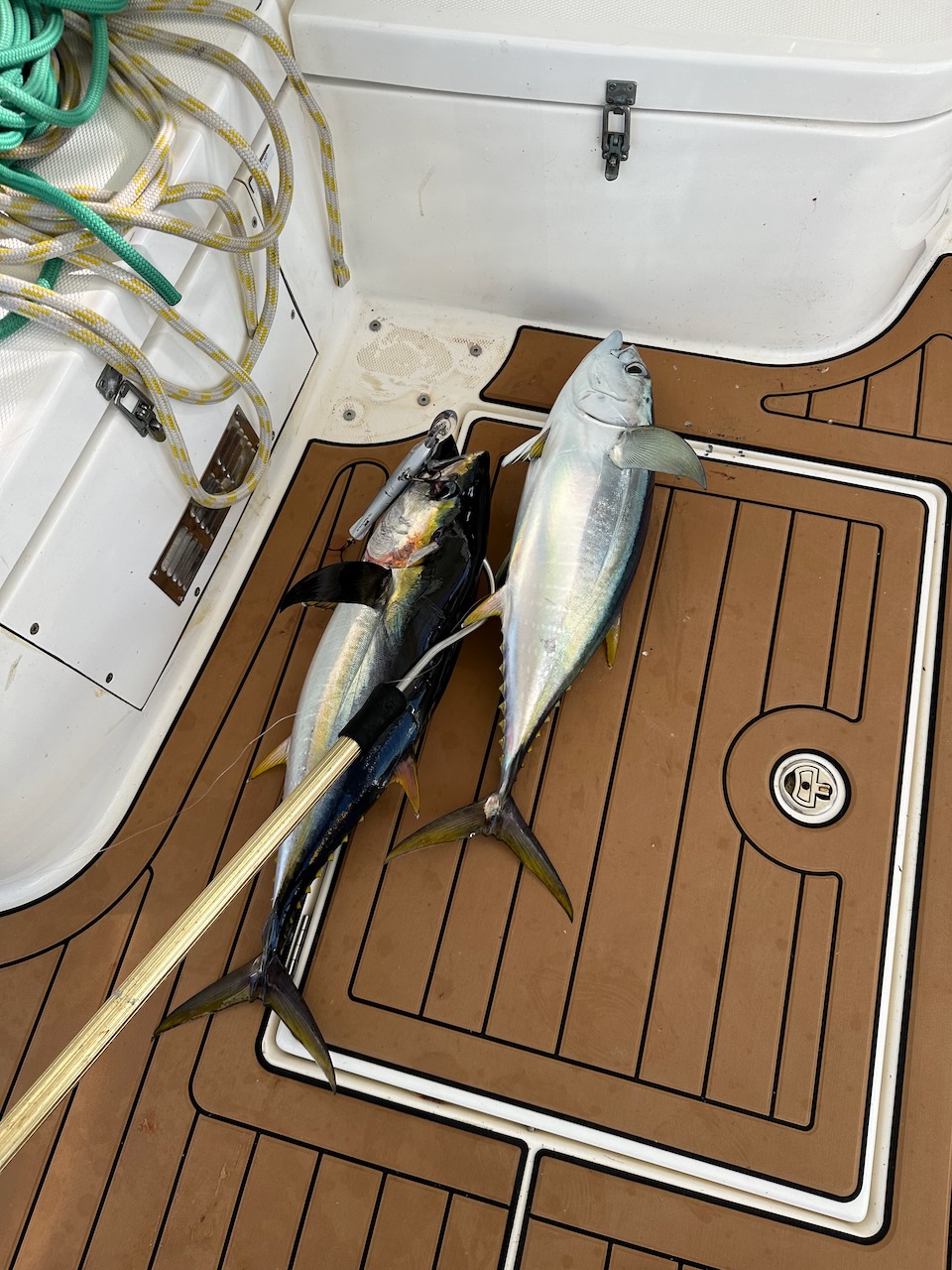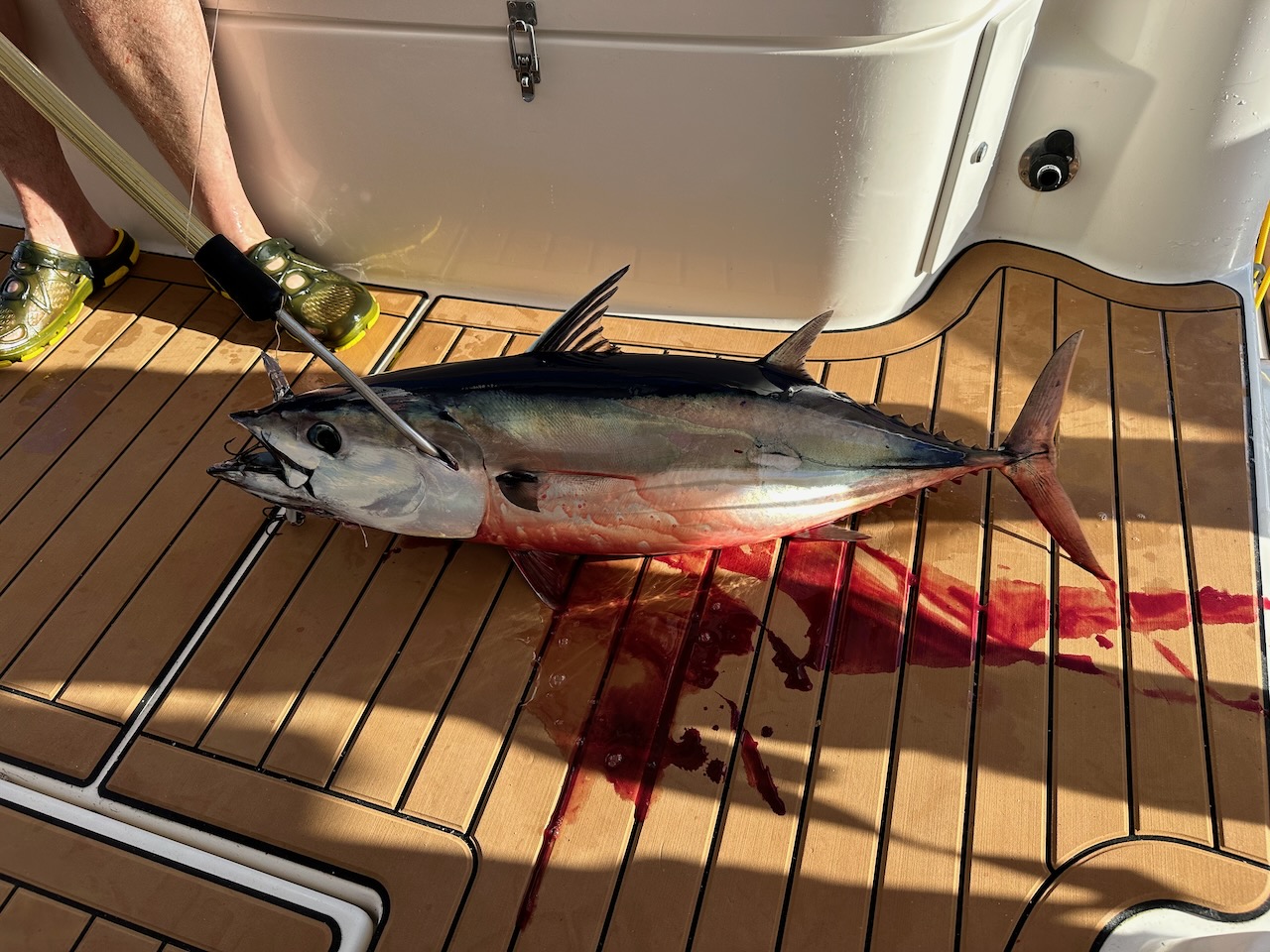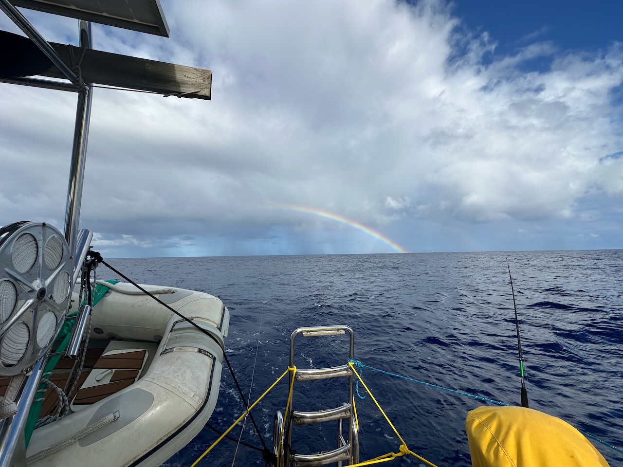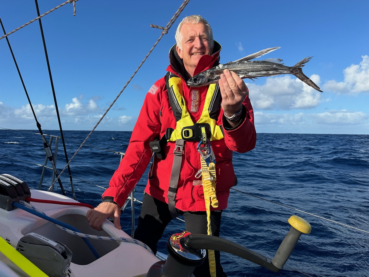 July 1st brought our first fish of the trip – not including flying fish which managed to get onboard unnoticed and leave a trail of scales all over the decks. Nigel was first to the rod and brought in a good size skipjack tuna. Enough meat to keep us going for a while – we even managed smoke some on the BBQ.