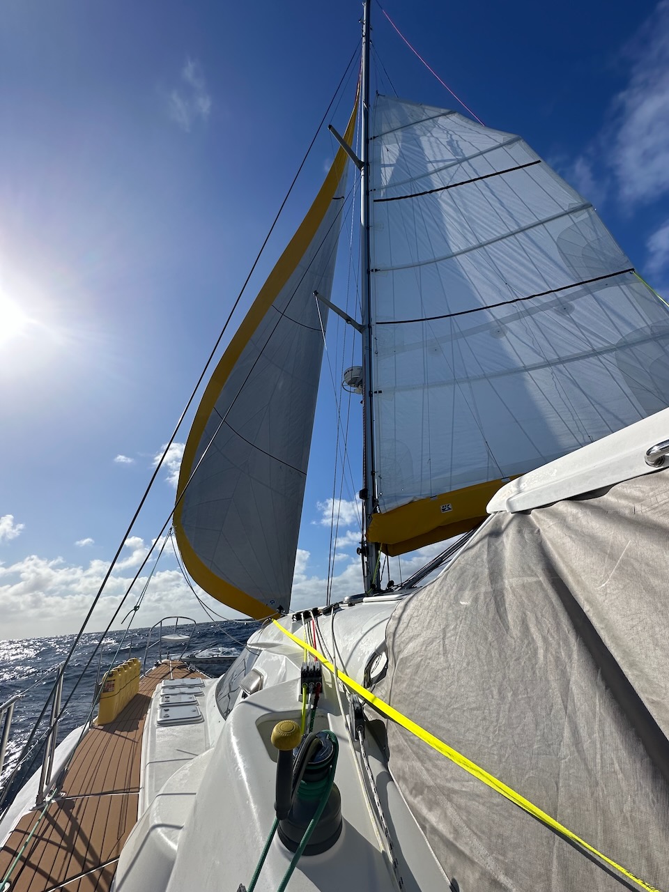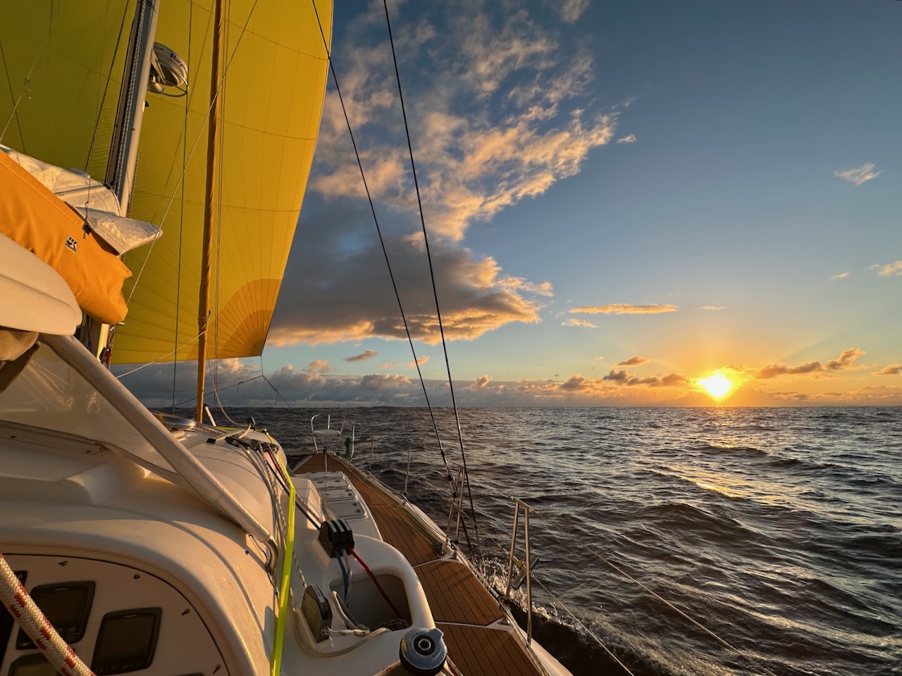 By 11:00 am we hoisted the spinnaker and, with the wind less than 7knots apparent, felt confident enough to fly it all night.