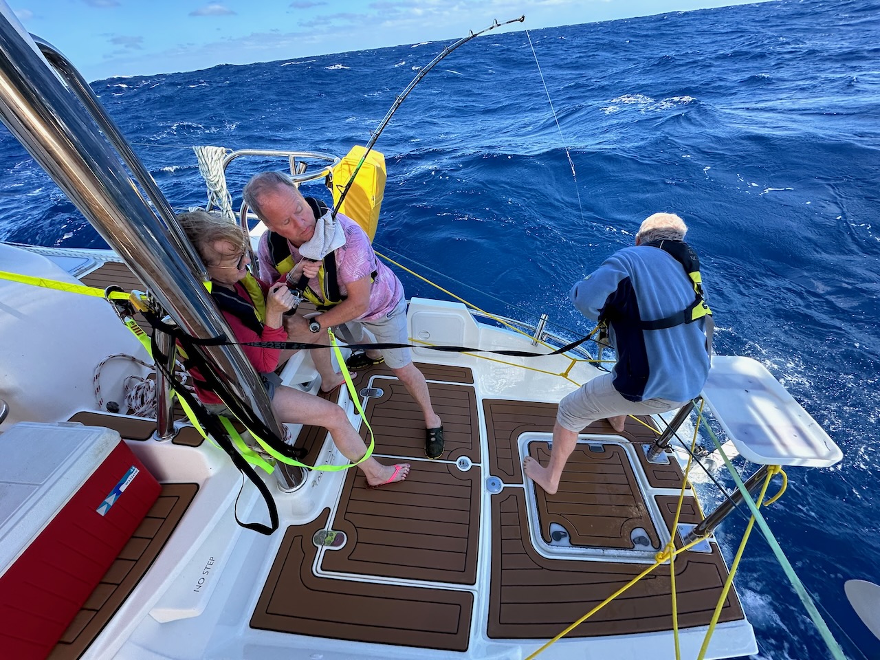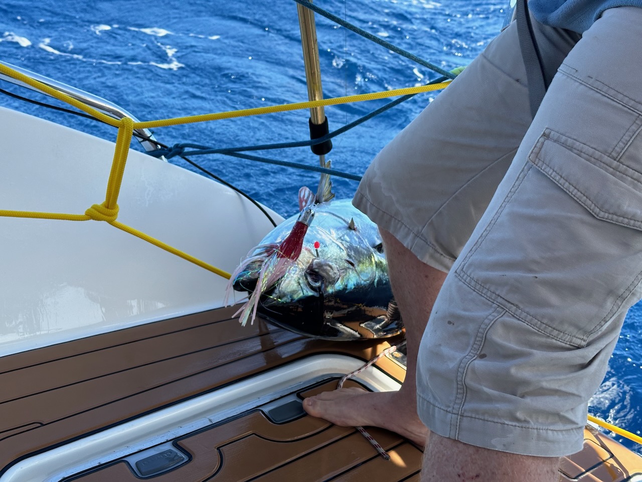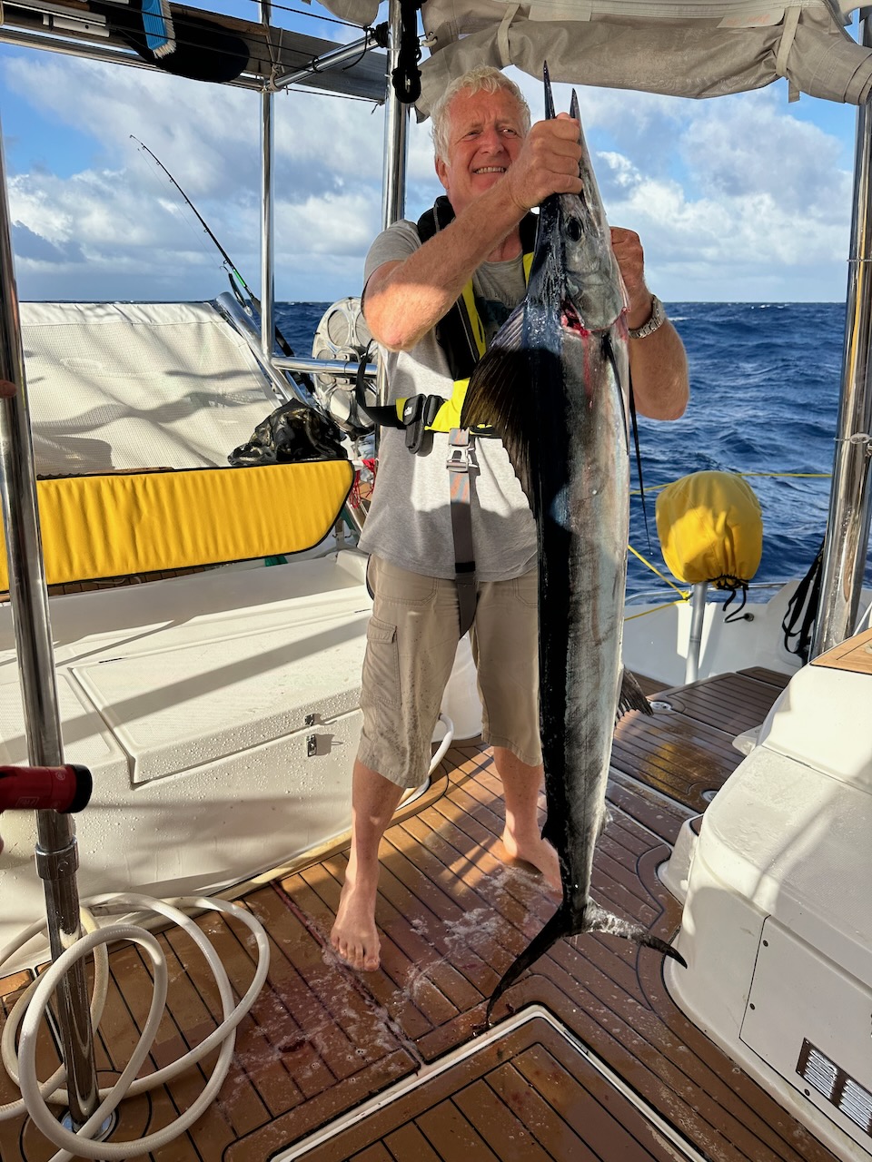 Our first day was fabulous downwind sailing in a strengthening southerly. The only distraction was Nigel reeling in a good size sailfish. Our freezer stocks are building up nicely.