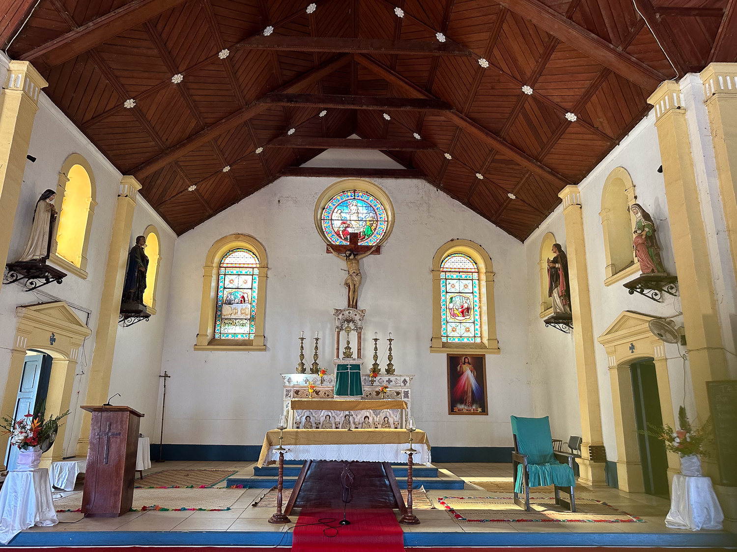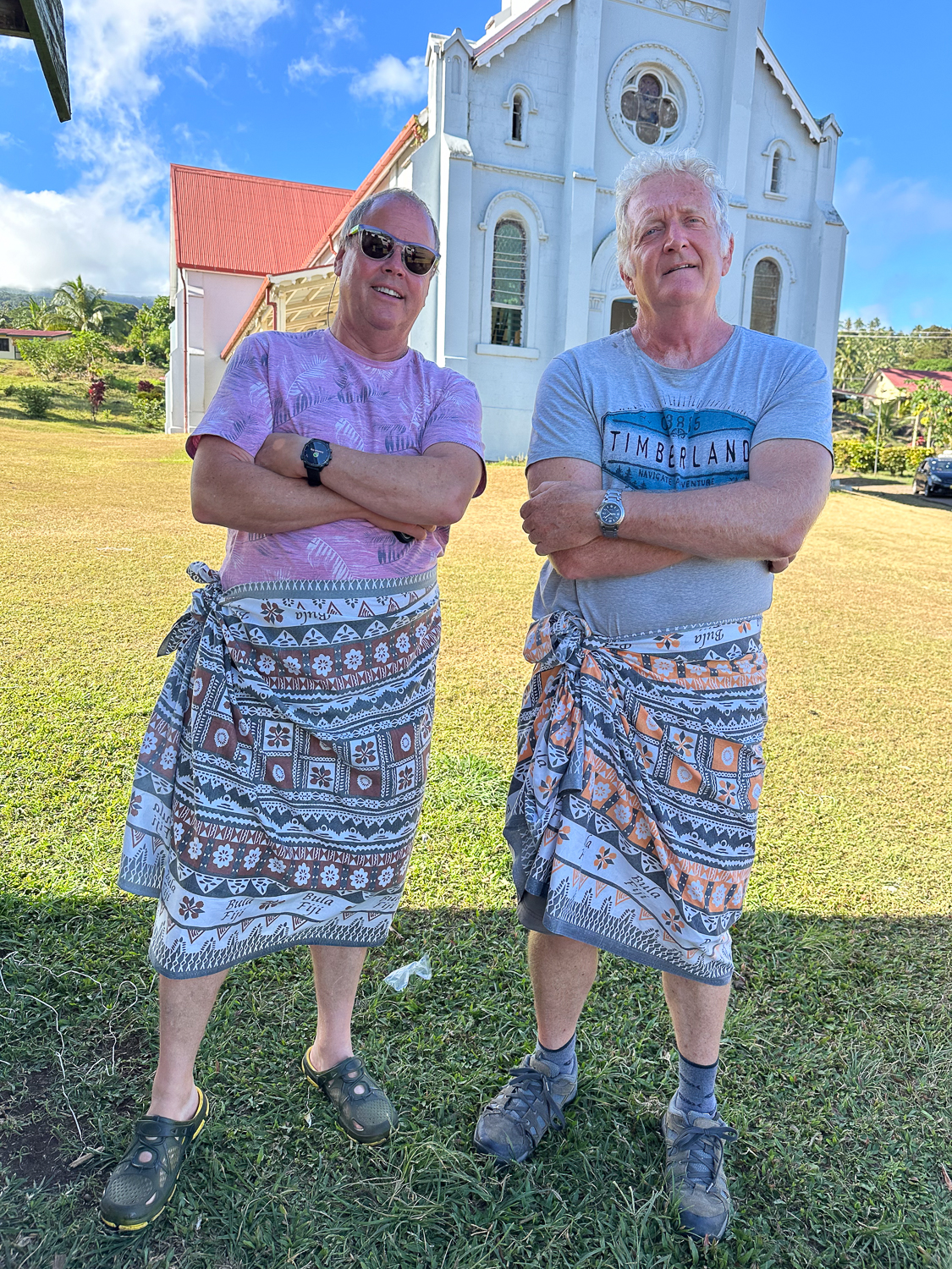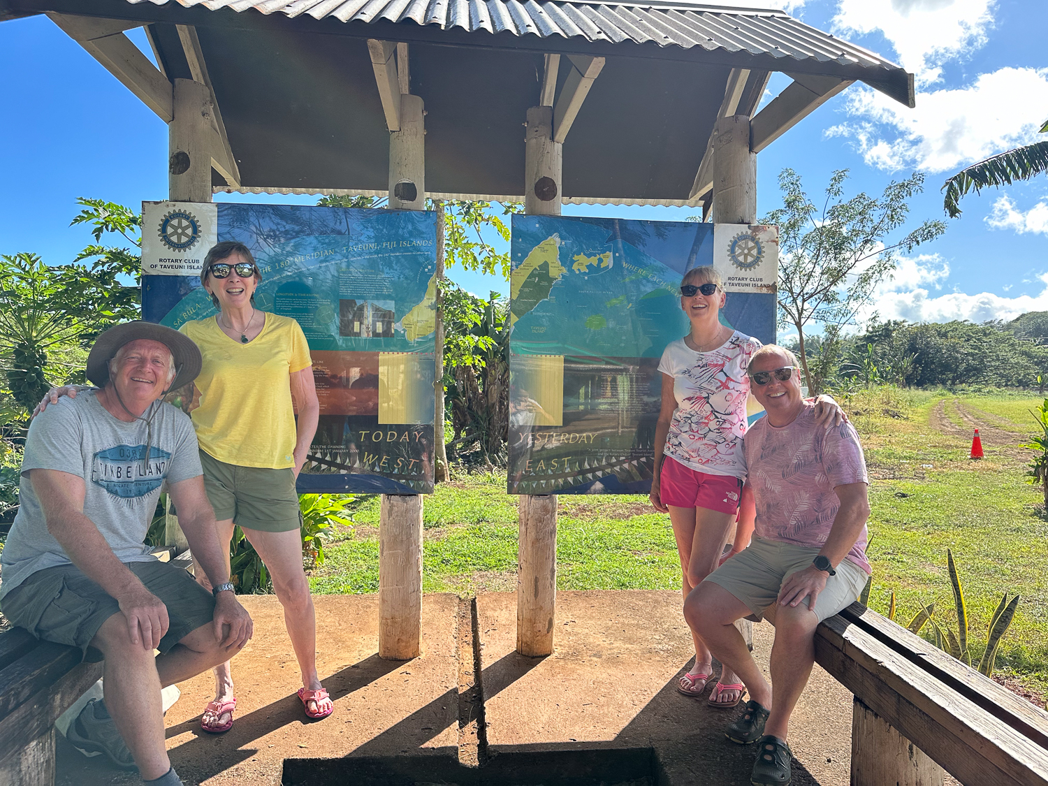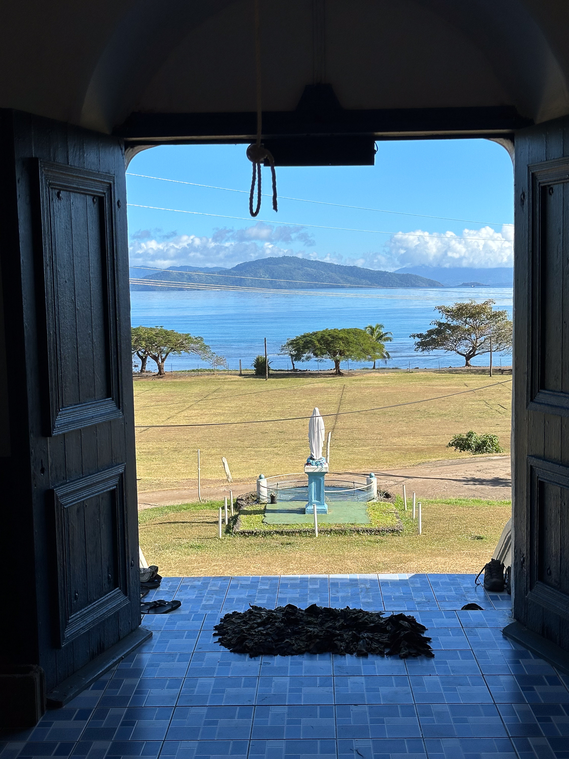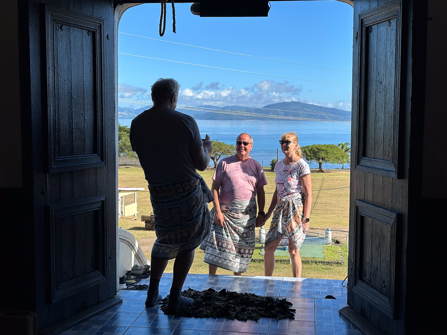 The next day we went on a tour with the resort. It seemed like the best way to see something of Taveuni Island. A relatively early start was needed to fit it all in – a visit to the “cathedral”, the local town (Somosomo – one of three such named towns that we would encounter on the trip), a toilet stop at the airport, and a spot to celebrate crossing the international date line.