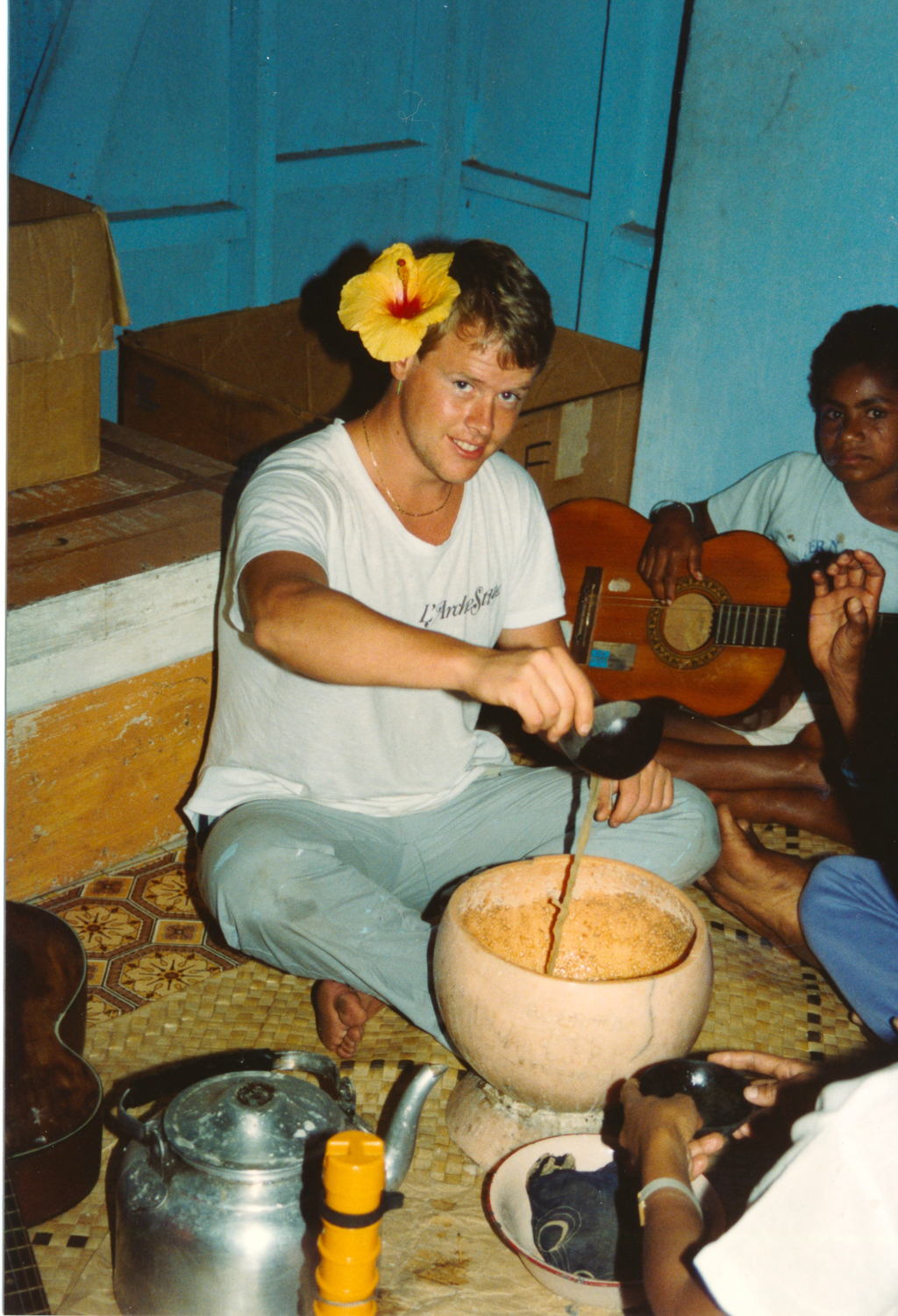 Afterwards, Jonathan’s laptop was the centre of attention. The first person to identify themselves in the photos was Romeo. We all moved into his house to get a better view of the screen. Romeo was a young man in the photos and was happy to accept all the friendly ribbing that came his way about how he had changed.