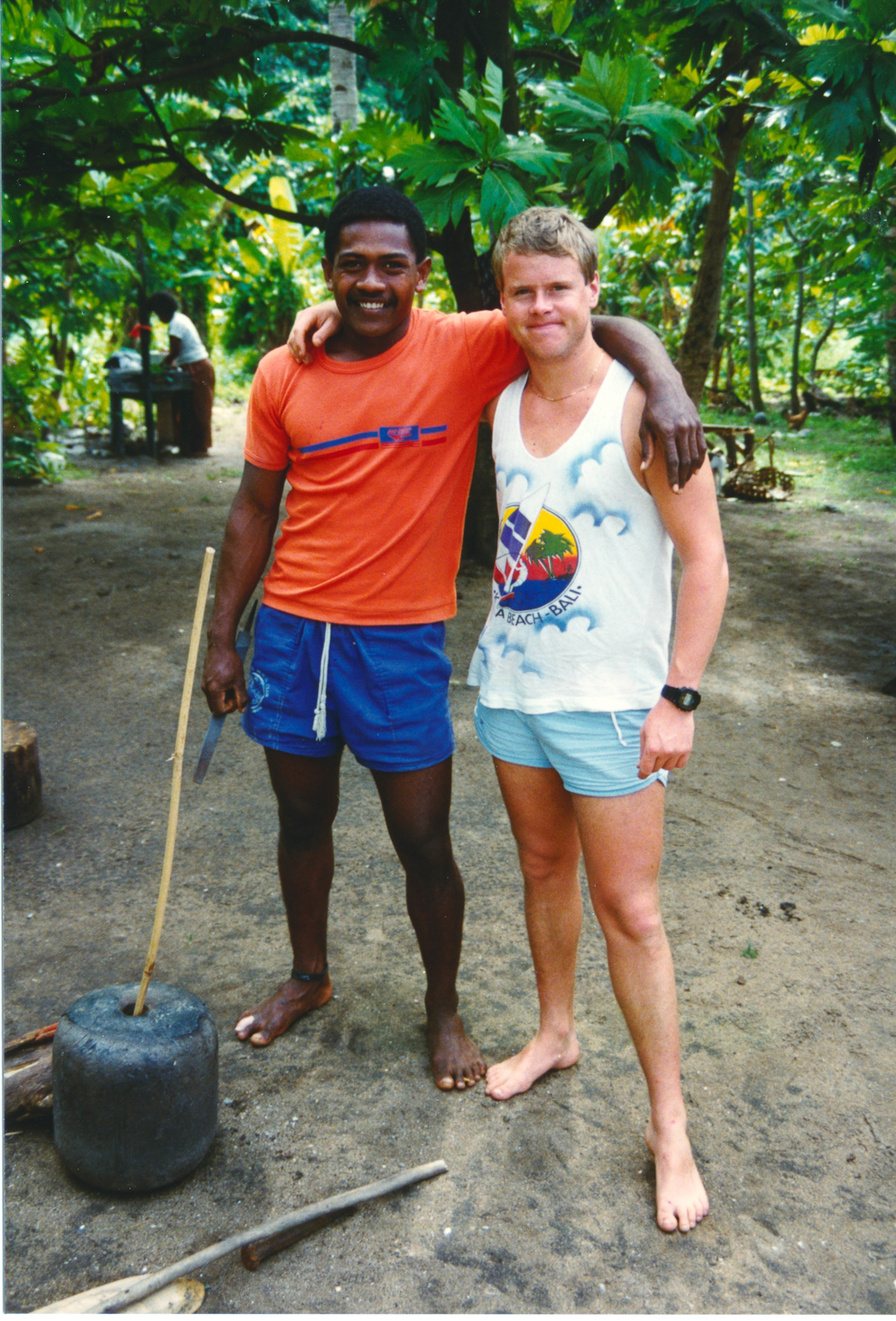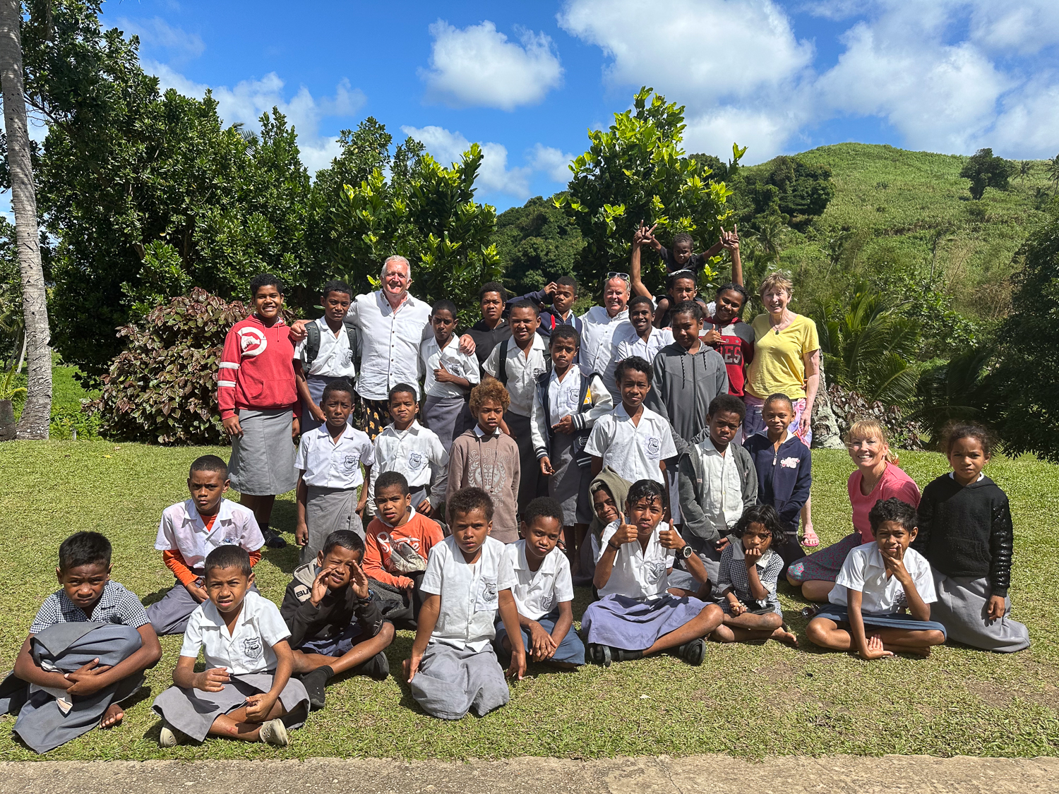 From New Zealand, they went to Fiji and ended up on a supply vessel from Suva. The skipper gave up his cabin for them and said as soon as they saw an island they liked the look of they could get off. After one night they had arrived at Ono Island. They ended up living in the community for the next six weeks. It was a magical time in their lives and they had long dreamed of returning. Now we were on the way back.