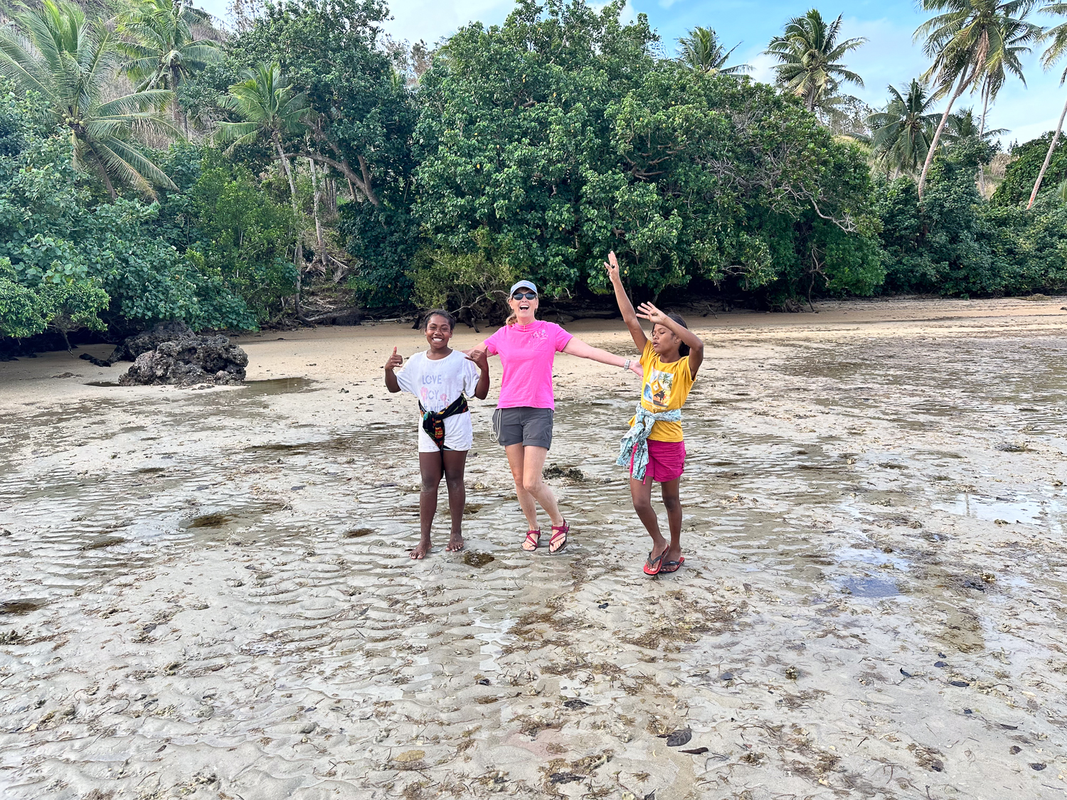 Eventually, we anchored in front of Vabea Village in 7 metres of water on a sandy bottom. Claire and Jonathan were feeling slightly nervous as we prepared to go ashore for their return after 35 years.