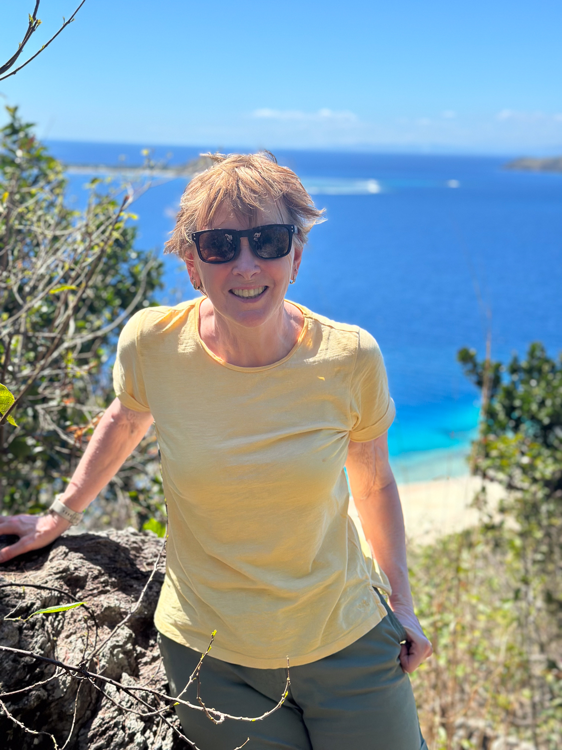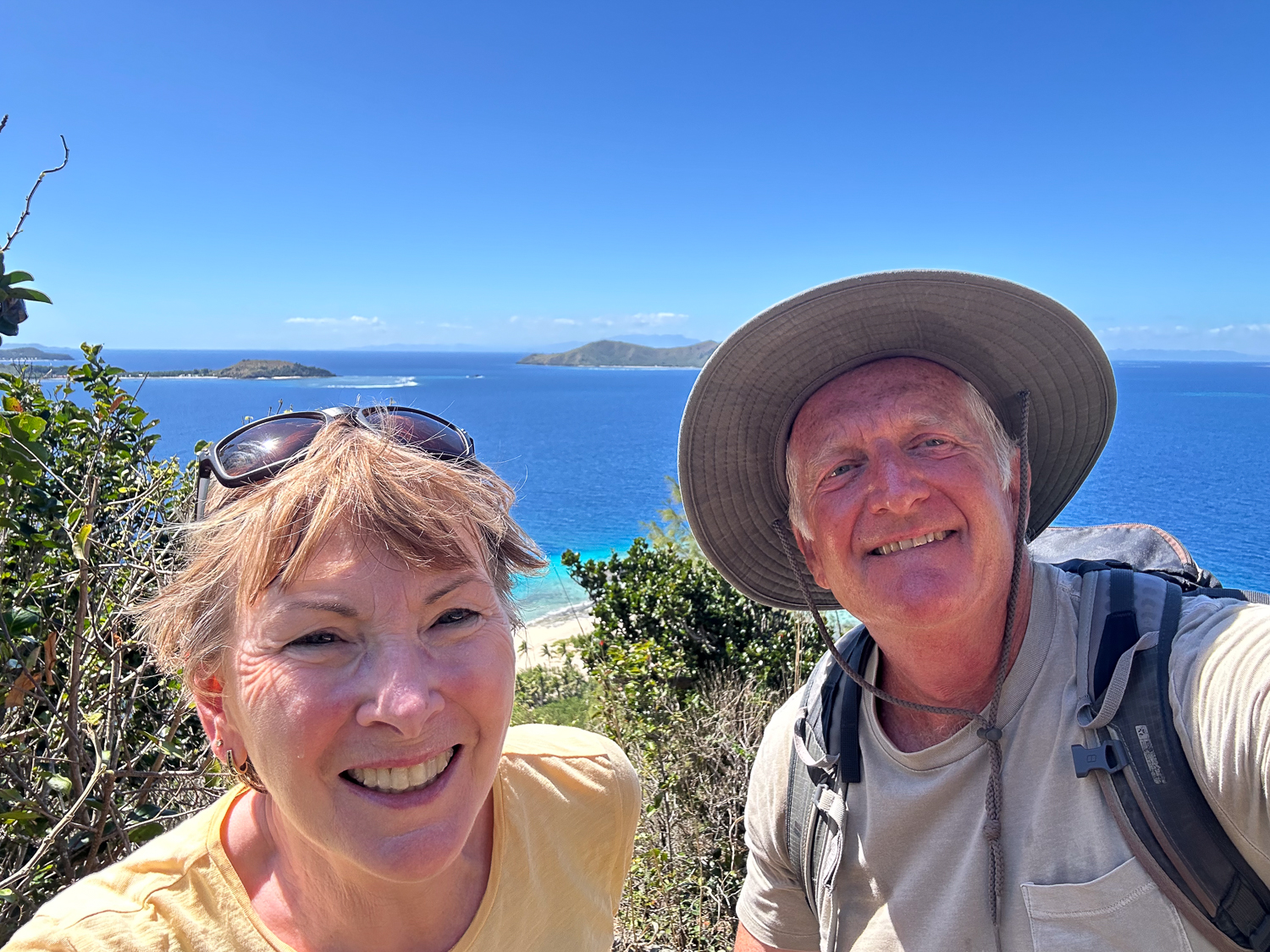 Sue and Nigel had got distracted taking photographs on the beach so Claire and Jonathan had gone ahead to the lookout. The couples managed not to see each other again until Sue and Nigel were returning down the track and met the others traversing the hillside, somewhat ‘off piste’! Somehow they had got lost coming down. It could have been worse. A week later we learned of another couple from one of the Island Cruising Rally group who had got lost on the same track late in the afternoon and had been forced to spend the night on the island. Castaways on Castaway Island, you couldn’t make it up!