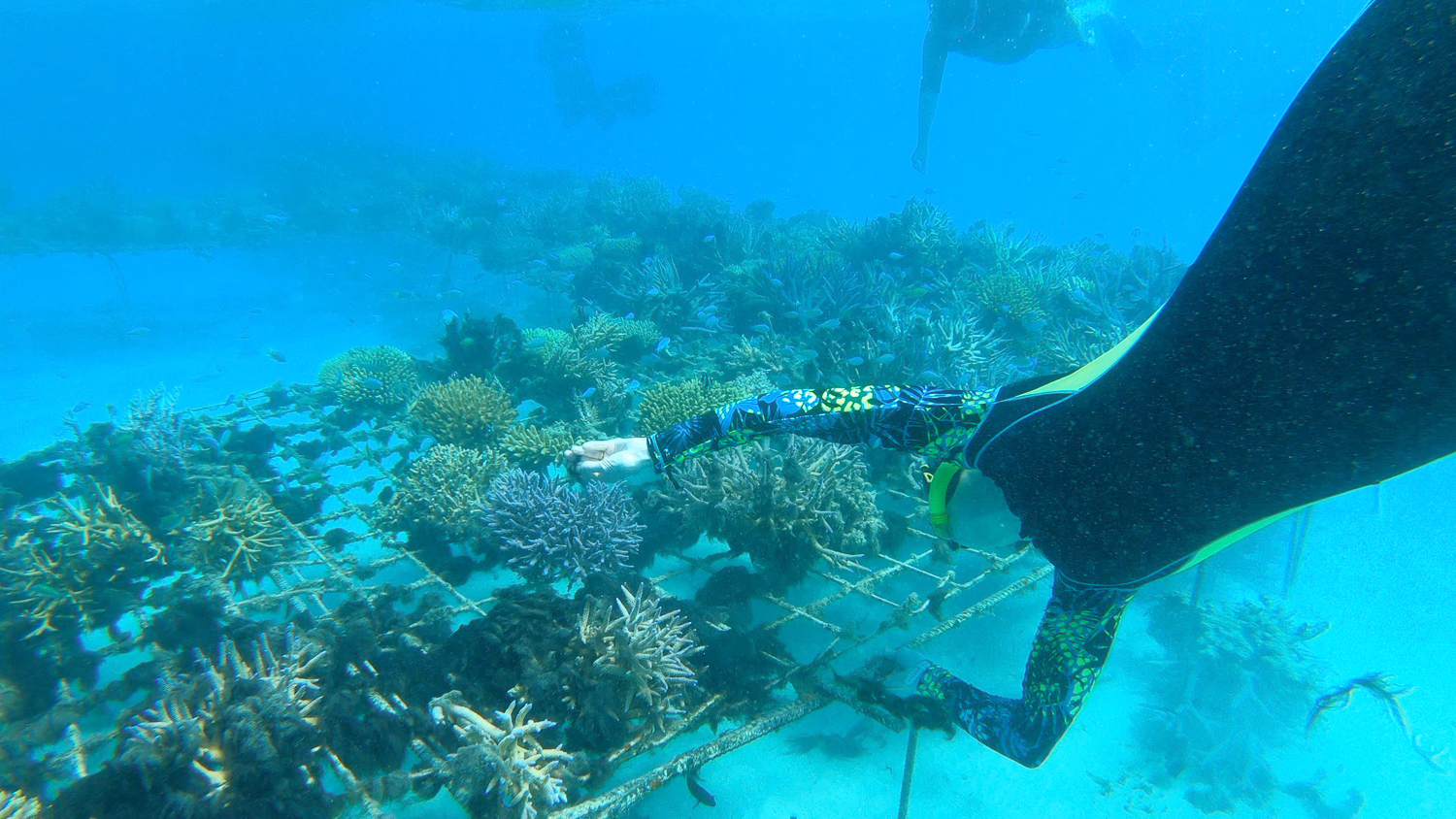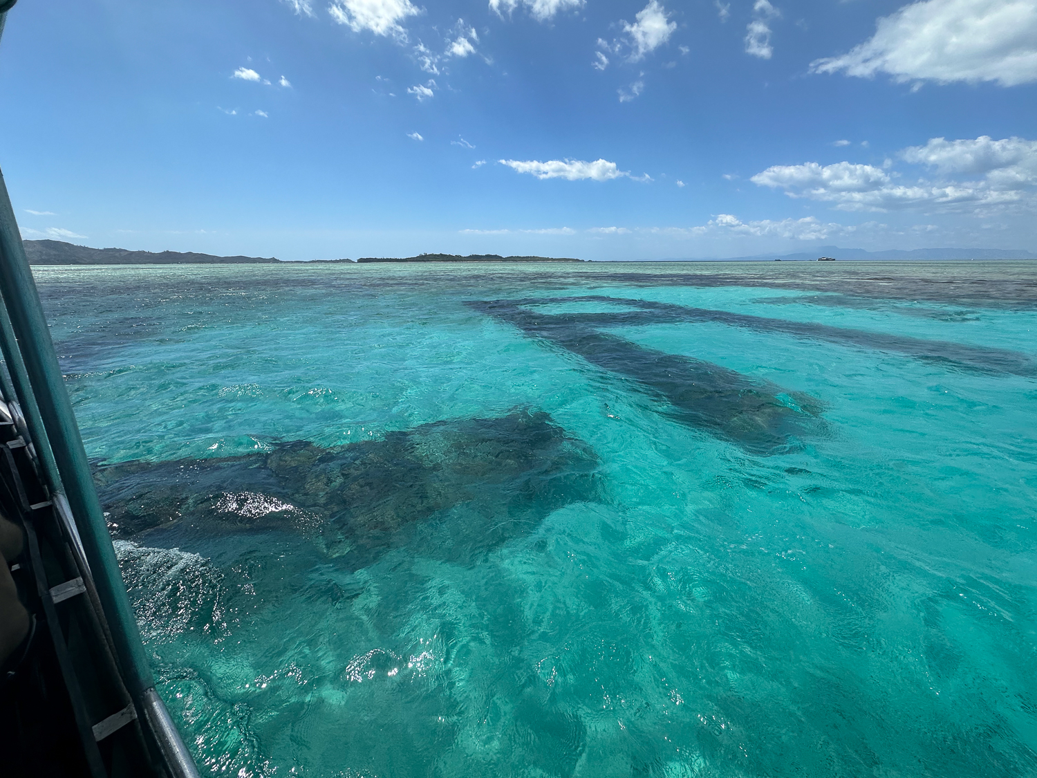 We took a boat trip out to a coral nursery that he has established and snorkelled around the steel frames and ropes used to grow specimens that have been found to be heat tolerant. It seems that some species of coral have begun to produce genetic mutations that mean they are better adapted to heat than others (even within the same species). They have been able to select out the corals which express these genetic markers within several species and are attempting to grow them on these artificial ‘reefs’ for later transplantation to areas that have been bleached or damaged by storms etc. The ‘reef’ has been constructed to spell out BULA – we couldn’t quite capture that on camera.