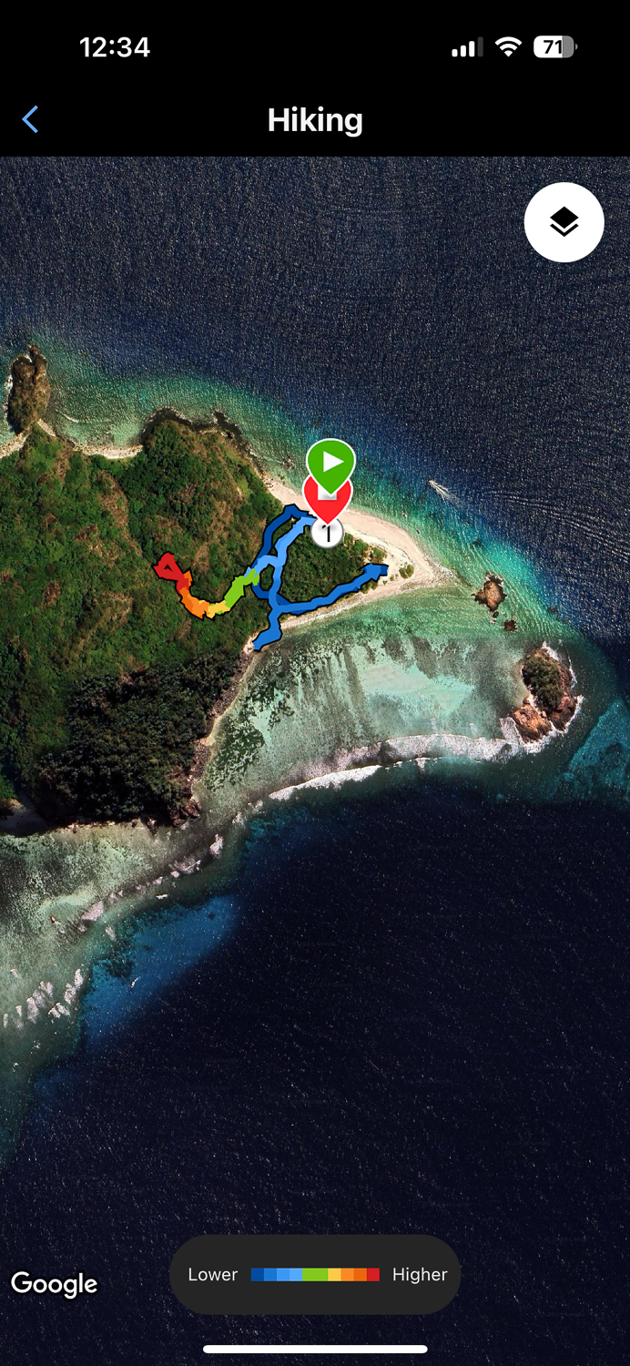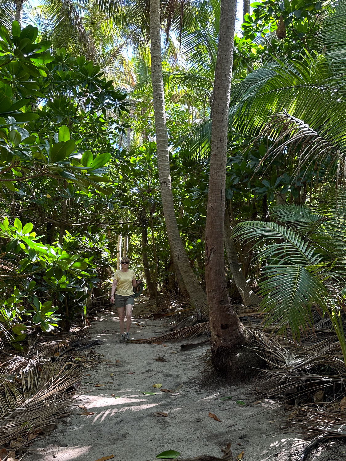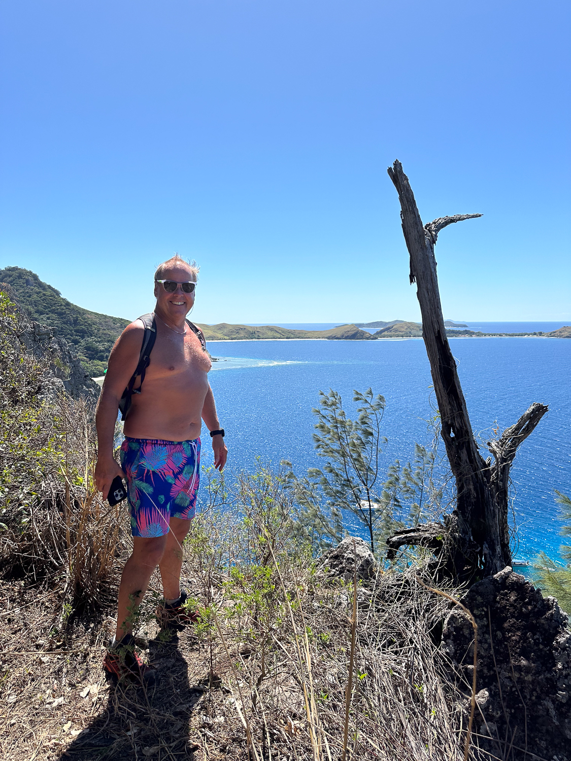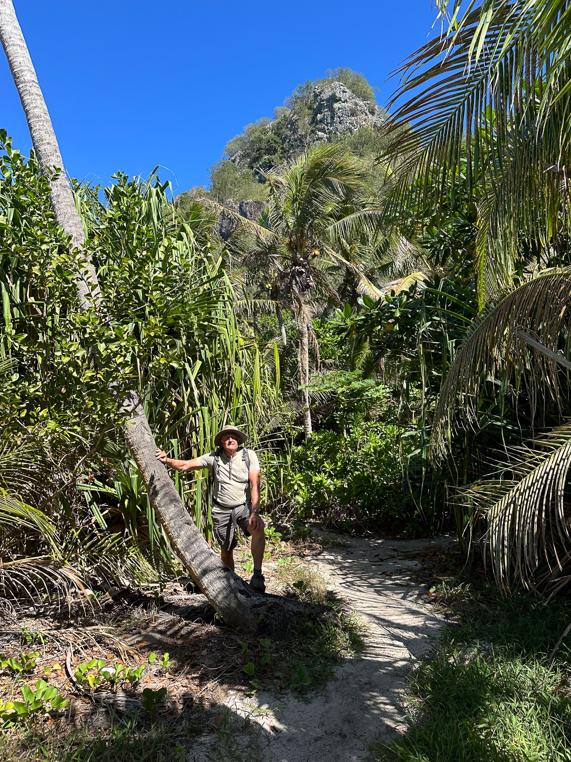 The island was beautiful with trails through the coconut palms and other vegetation and a steep track up to the lookout. We had watched the movie a few days earlier so that many of the sights were familiar – the lookout was home to the tree where Chuck contemplated suicide.