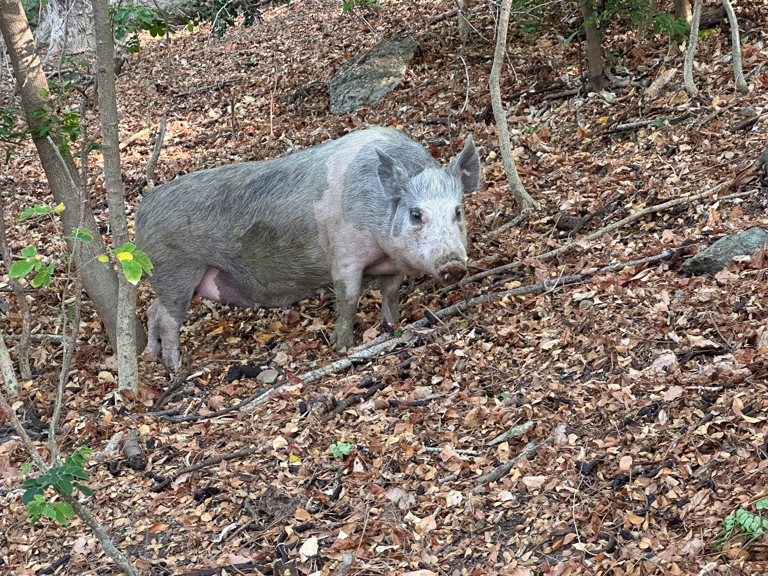 The descent into the village took us through a large piggery with free ranging pigs (many large sows and countless piglets) wandering across the path. In the village we were told that our lady had not returned from work. We gave up and went back to join Jonathan in the bar.
