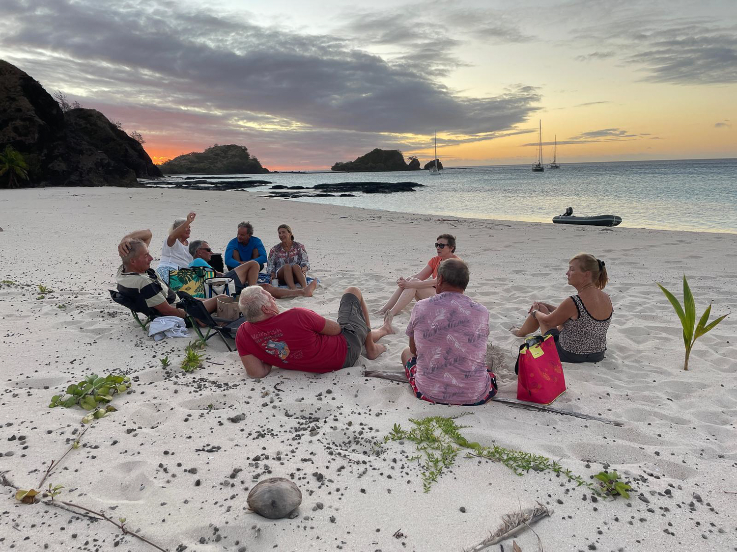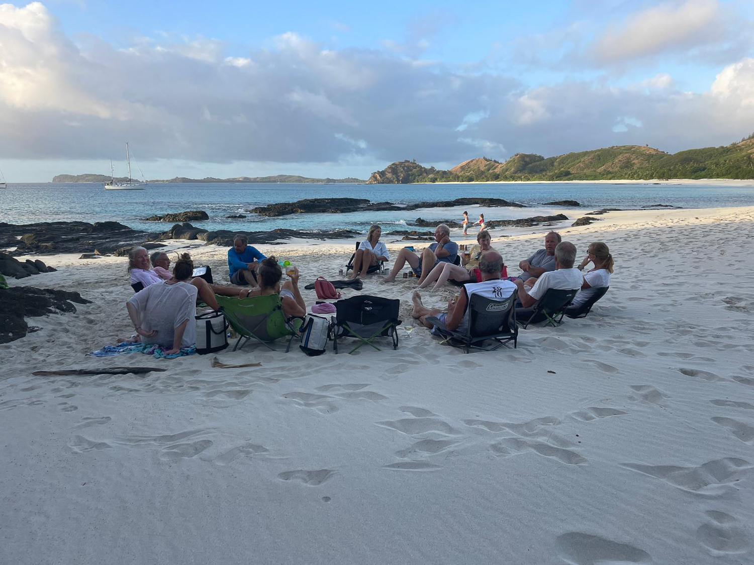We had planned to go ashore and have drinks at the resort that evening but Sue got a message from Helen (Mintaka) whom we had met along with her husband, Brownie, on the Taveuni bus tour, inviting us to join a group having sundowners on the beach.
