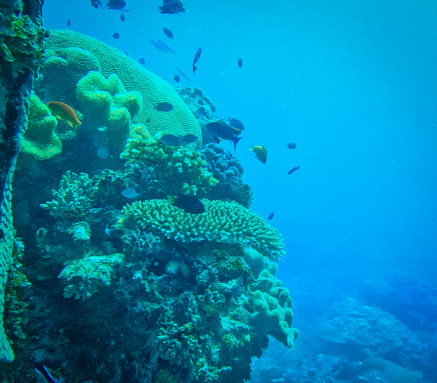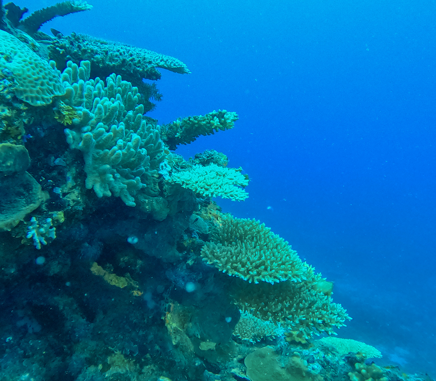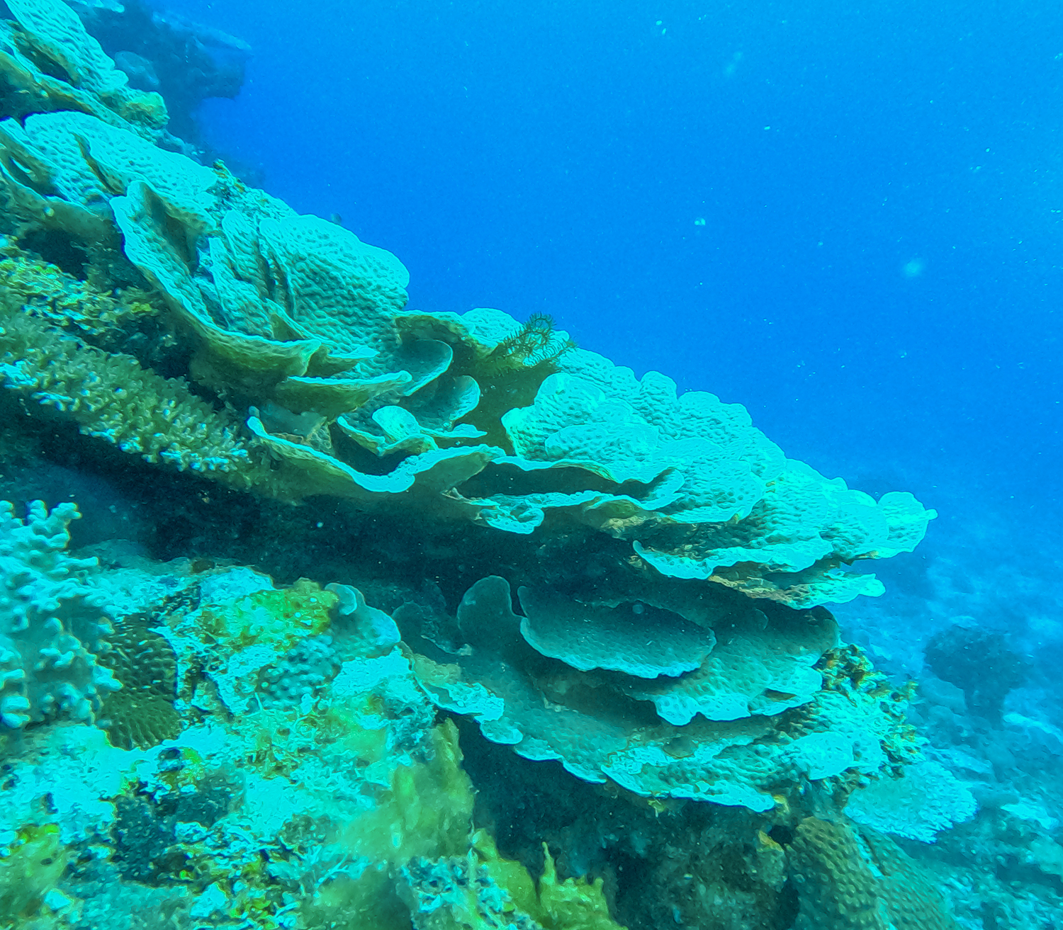 Our arranged 10:30 pick up was obviously Fiji time. But, not long after 11:00am, we were safely aboard Semis’ boat (open fibreglass with 70HP Yamaha) for a short trip to a dive site known as Tavewa Break. Semi clearly was not going to be using too much of the $65 worth of fuel that we had put in his tank!