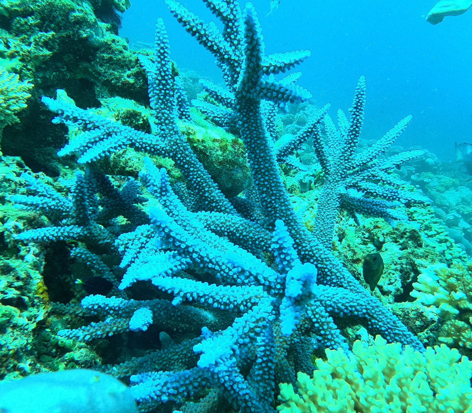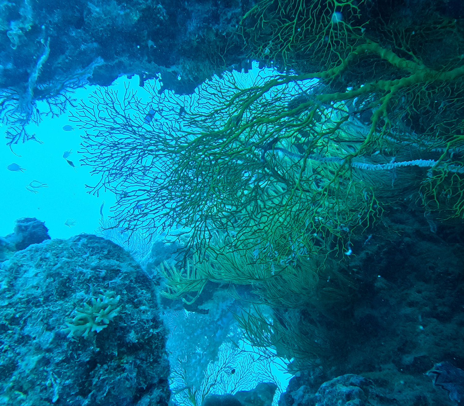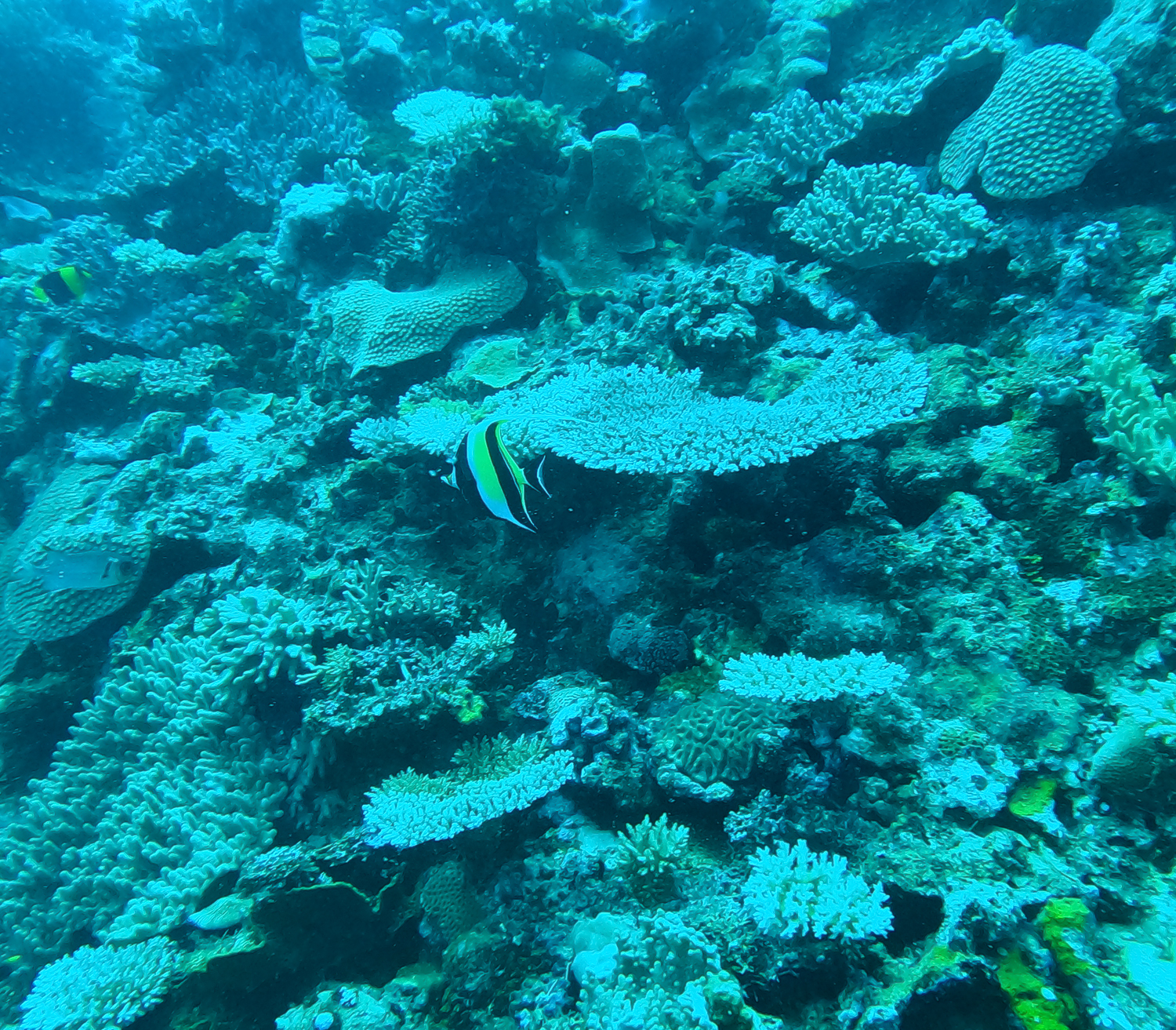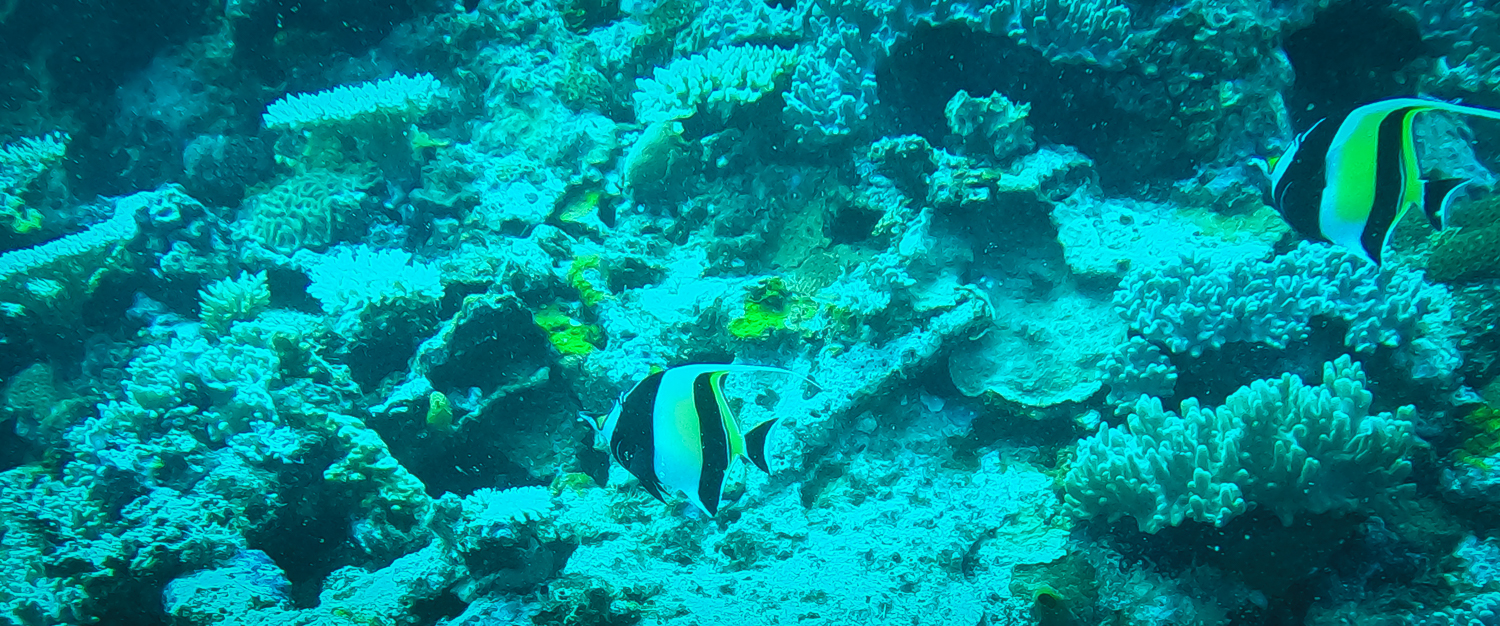 Our arranged 10:30 pick up was obviously Fiji time. But, not long after 11:00am, we were safely aboard Semis’ boat (open fibreglass with 70HP Yamaha) for a short trip to a dive site known as Tavewa Break. Semi clearly was not going to be using too much of the $65 worth of fuel that we had put in his tank!