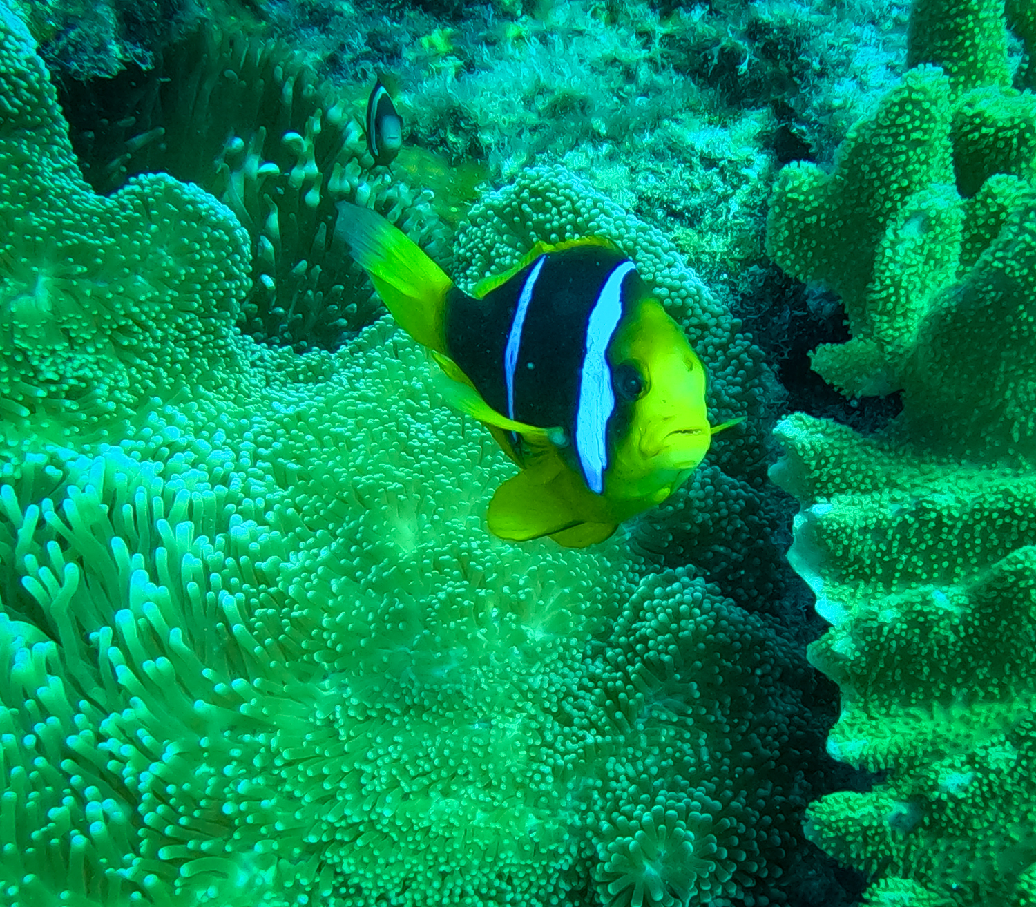 If you’ve followed the trip so far, you will know that we have been completely captivated by the clownfish that make their homes in a particular type of anemone. The clownfish and anemones have a fascinating symbiotic relationship – well worth a read. Between us we had taken hundreds of photos and, quite probably, over an hour’s worth of video footage of these colourful fish.