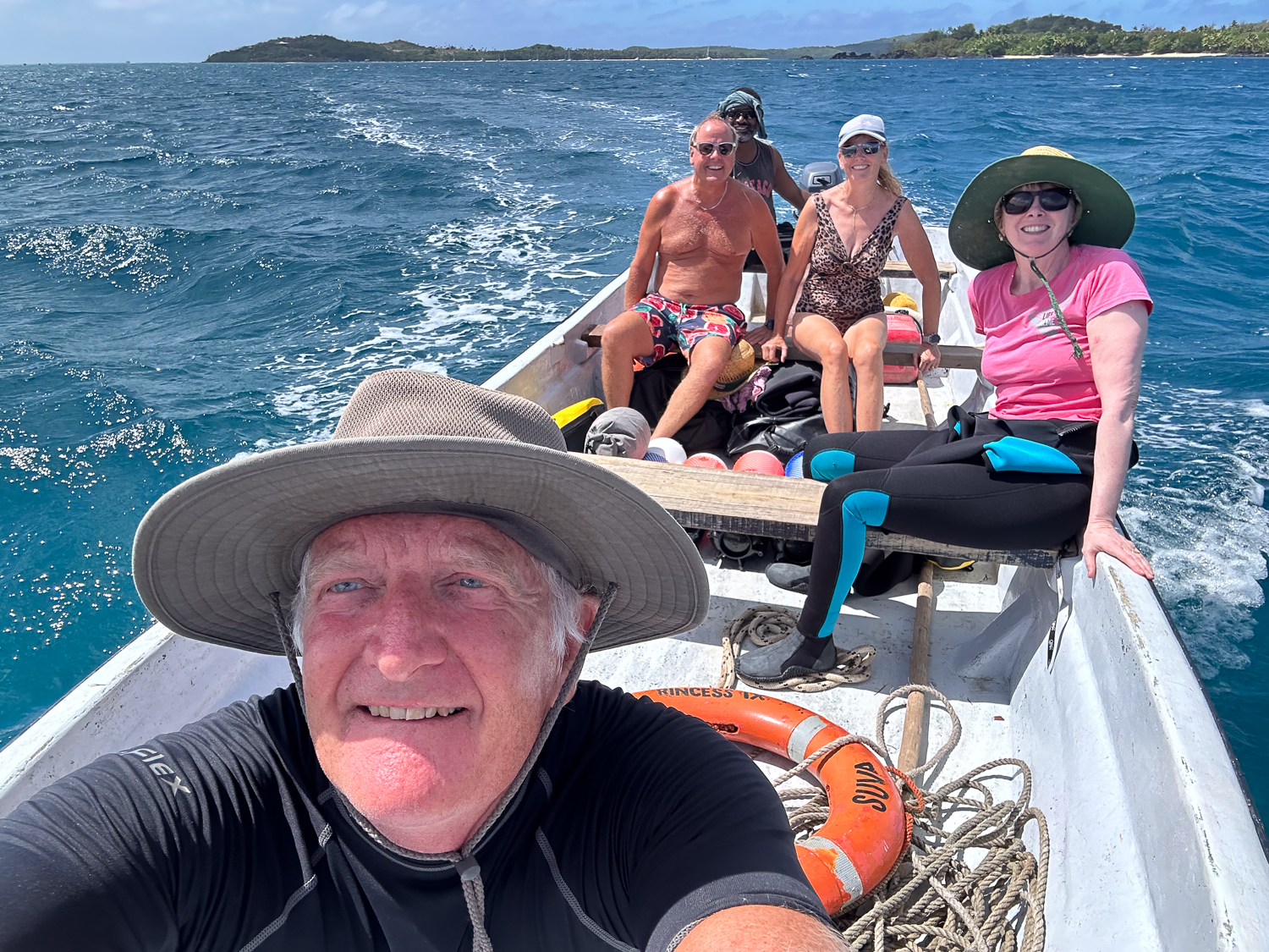 The next day we planned to motor to the nearby Ndevoi Island to dive. Initially, we were reluctant to leave as we could see several yachts heading our way and we were concerned that we would lose our prime anchor spot. We wondered if there was an equivalent, in sailing etiquette, to leaving your towel on the deckchair by the swimming pool in order to retain your anchor spot. Probably not!