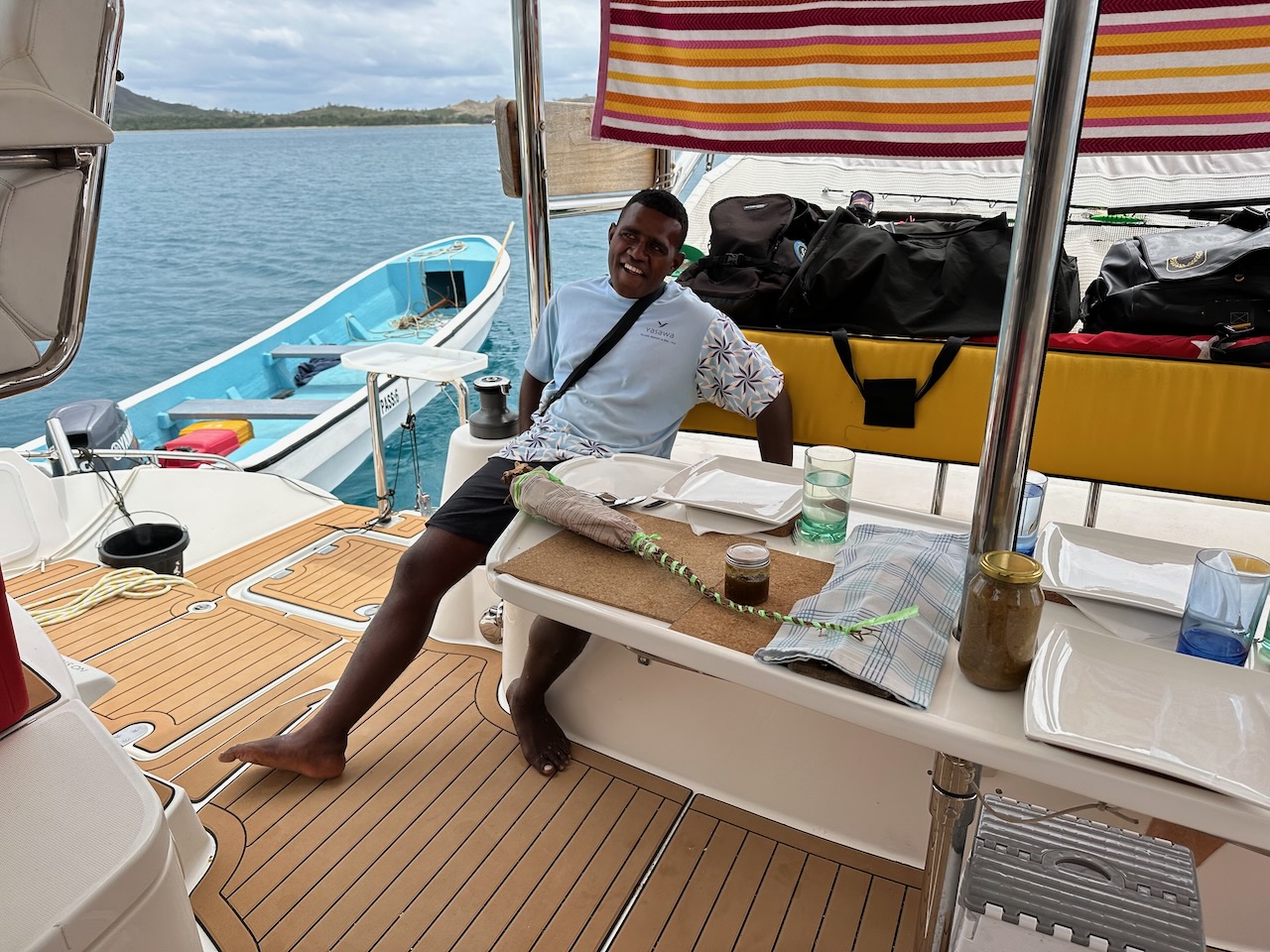 Another local approached us (in his open fibreglass boat with a 70 HP Yamaha outboard) to ask for Sevusevu, we did not give any. It had become quite clear to us that it had not been required, that Paul was a bit of a fantasist and that there was a bit of a ‘rort’ going on. Other boats on the Island Cruising Rally and through No Foreign Land were reporting similar (sometimes quite demanding) approaches in the bay. A bit of a sour taste to an otherwise universally positive and super-friendly interactions with Fijian villagers.