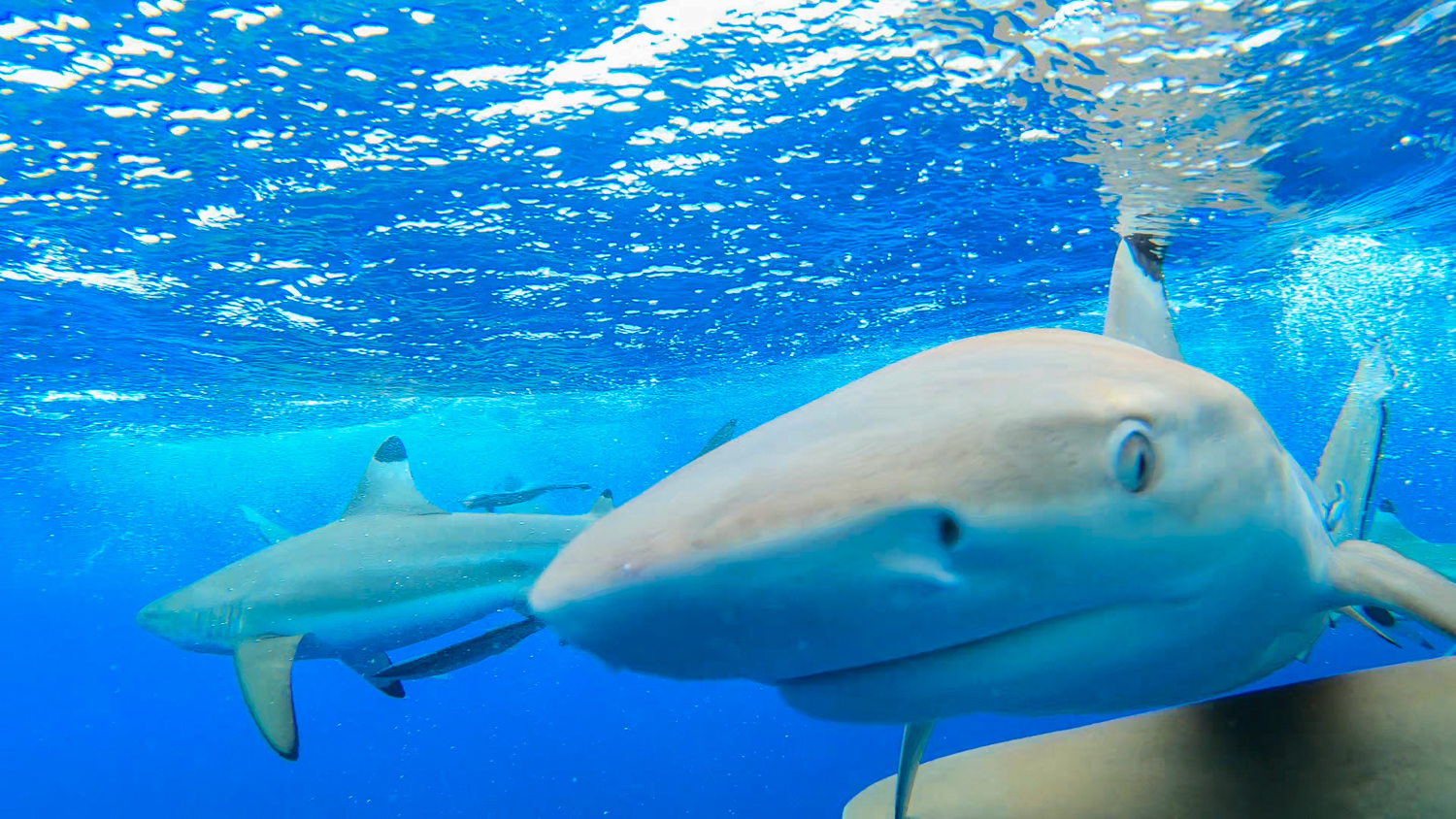 On cue, our shark friends greeted us a soon as we entered the bay. Jonathan’s filleting activity seemed to attract more. It was soon a bit of a feeding frenzy. We managed to get lots of underwater video using the Go Pros but, not surprisingly, no one was keen to get into the water this time!