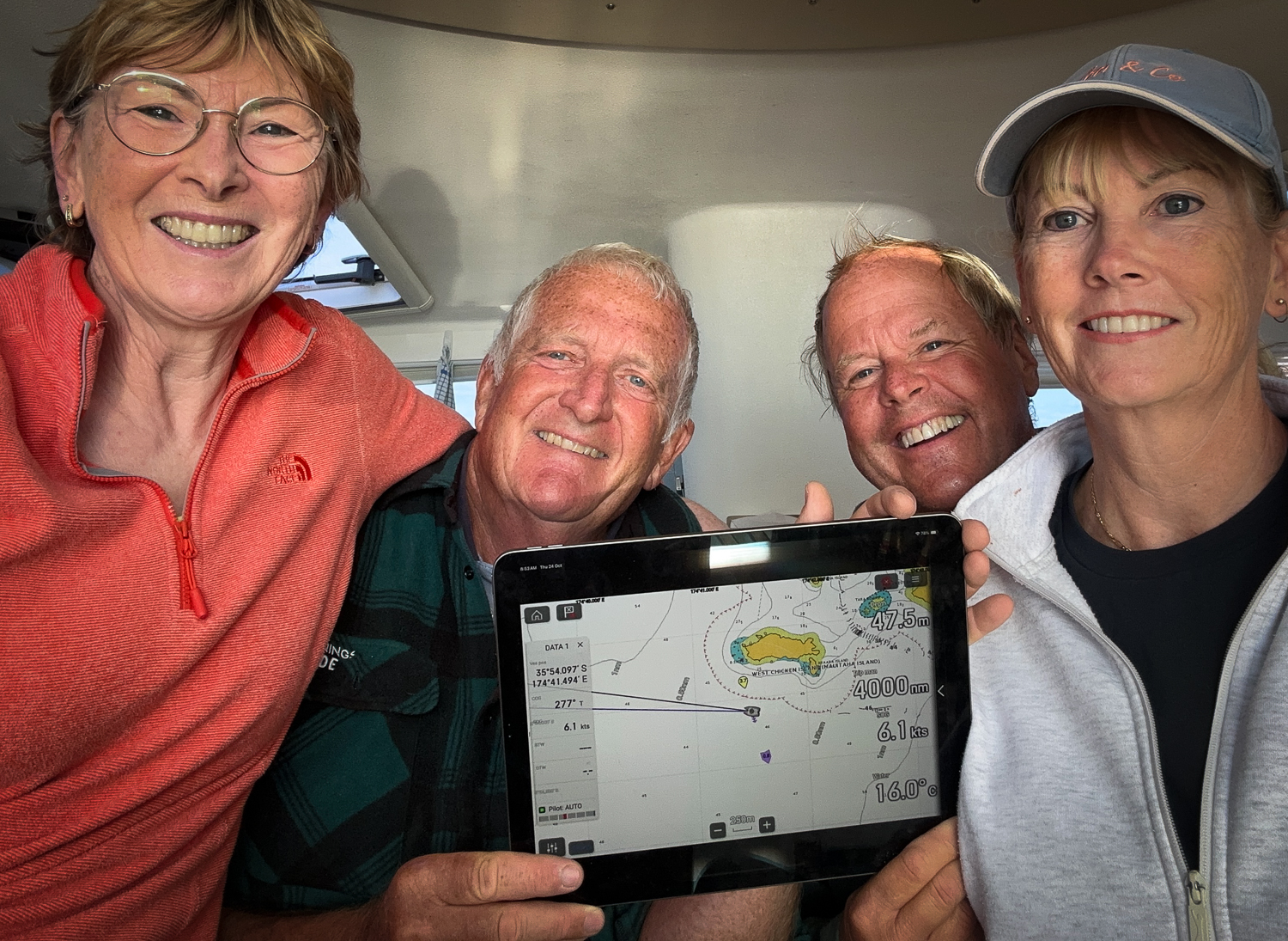 It was exactly four months since we had left and we were very excited as we left the Hen and Chicks knowing that our trip recorder was about to clock up 4,000 nautical miles. We were all very pleased with ourselves.