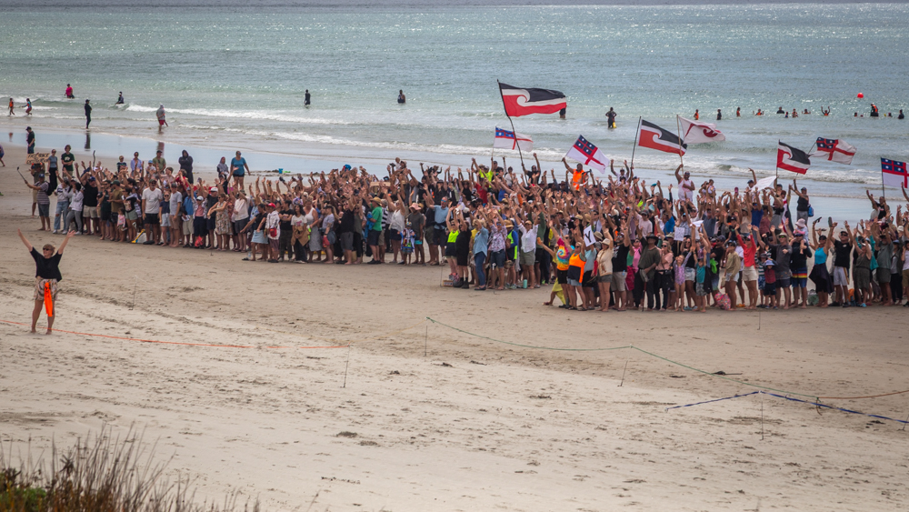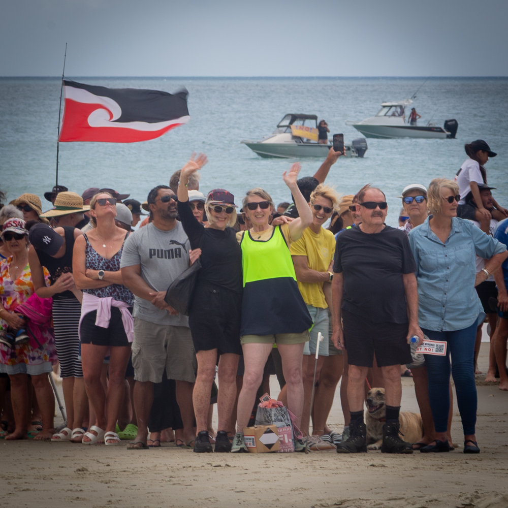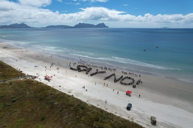 The biggest event for the group took place on Ruakaka Beach. We had a fantastic turnout with hundreds of people forming human letters to send a message to Government and McCallum Bros.