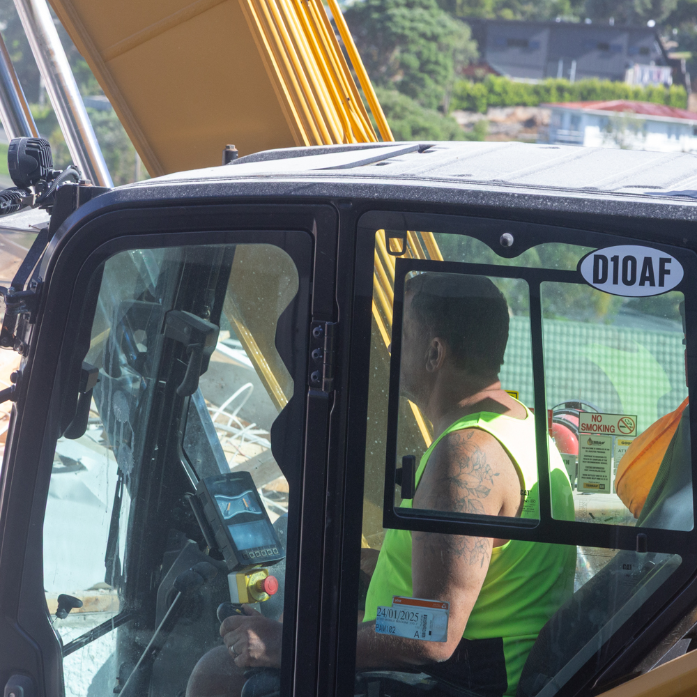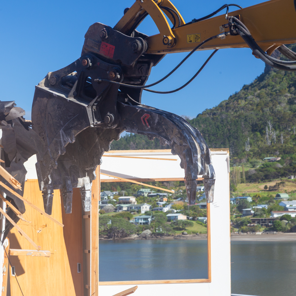 One man with a digger took a day to flatten the house and then another four days to clear the site. Nigel was onsite to persuade the digger operator to carefully pull out the few big rafters that he had been unable to remove on his own. Concrete was carefully separated for recycling and much of the copper wiring and pipe work was pulled out of the wreckage. But the vast majority simply went into landfill.
