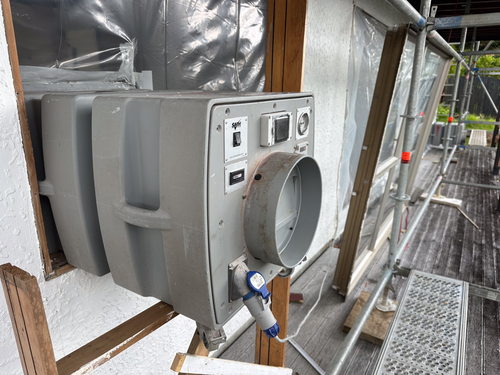 The cladding removal required scaffolding around the whole house while the vinyl needed an airtight enclosure with extractor fans and filters. A major job.