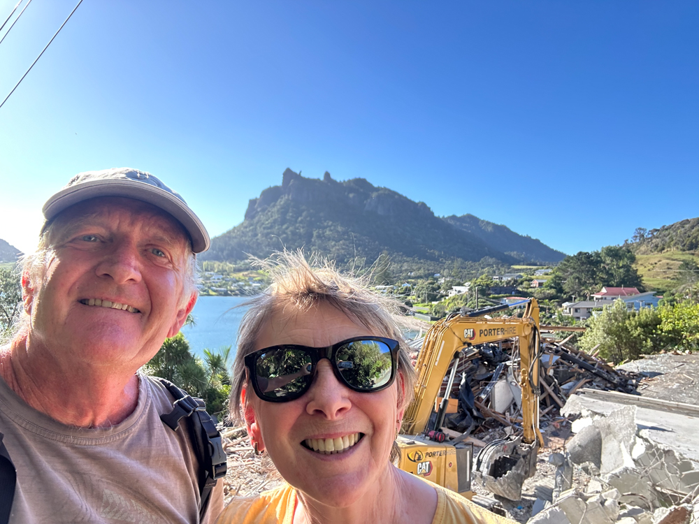 But then… We were half way up the track on Mount Manaia with Claire and Jonathan when Sue got a phone call. At last, the insurance company had agreed that the house could not be repaired and they were willing to pay out the full insured value. Fantastic. Now at last we could make a start.