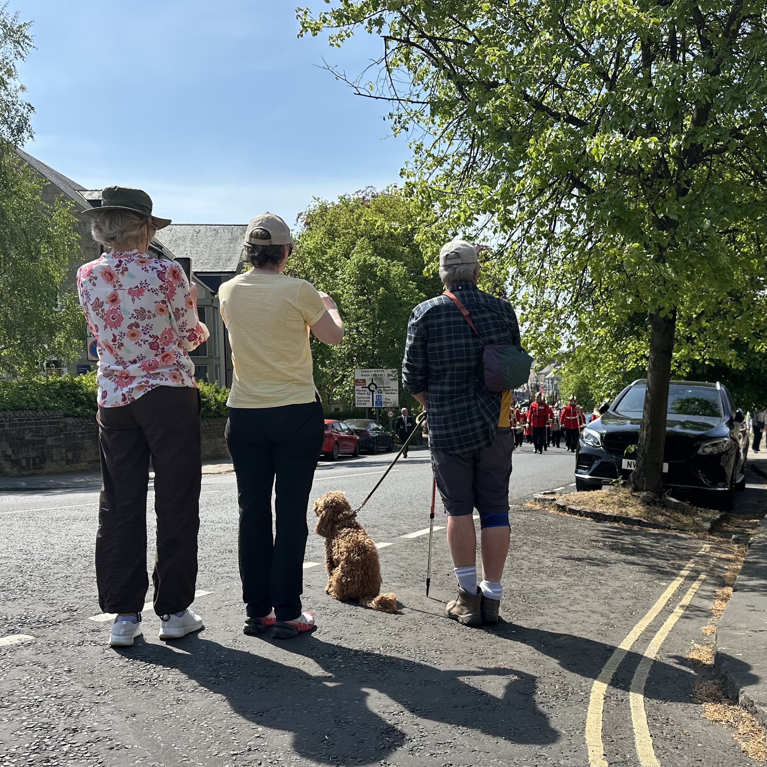 It was quite a spectacle but none of us knew the significance of the group marching in bowler hats and carrying furled umbrellas. Google suggests that on Remembrance Day, veterans from the British Army’s Cavalry and Yeomanry regiments march in bowler hats and suits as part of the Cavalry Memorial Parade in Hyde Park, London. The bowler hats and furled umbrellas are part of the traditional “walking out” dress for these veterans. Not sure if that was who sported the bowlers today but we did enjoy the parade and our short walk along the river past the remains of Easby Abbey.