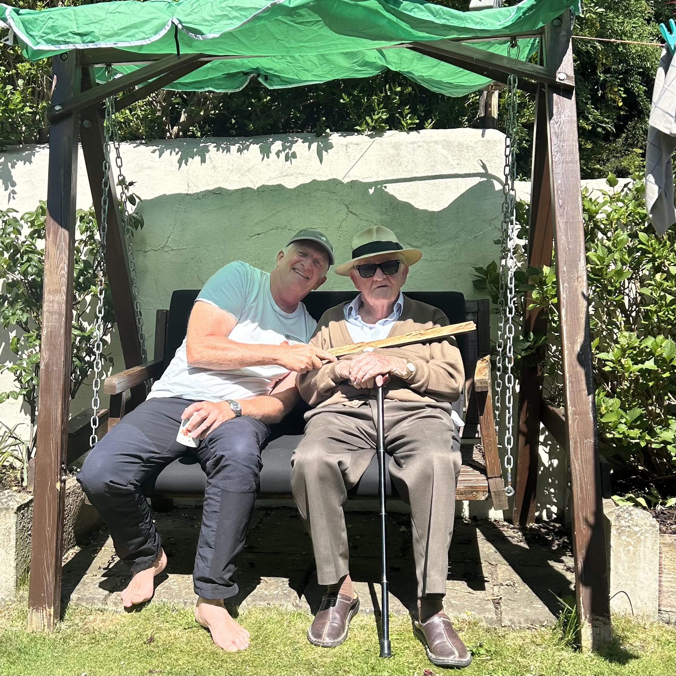 Eric and Christine had a rickety wooden garden swing that Nigel had attempted to patch up last time we visited. This time we felt that it was beyond saving. In the photo below Nigel is holding the remains of the chair arm that he has just pulled off, much to Eric’s horror.
