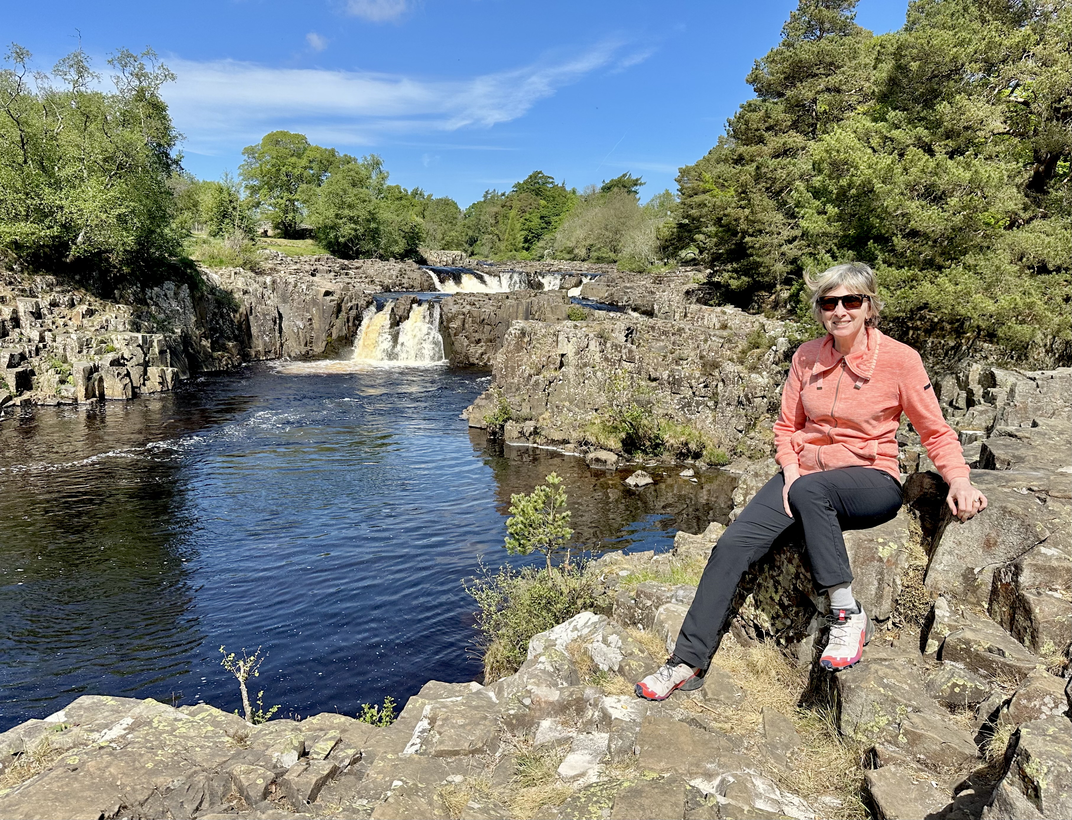 As usual we clocked up many miles around Tudhoe Village including following the River Wear into Durham and back, following the old railway line into Bishop Auckland and returning by bus and a day in Teesdale tramping from Low Force, past High Force and finally meeting Eric and Christine for lunch at Langdon Beck.