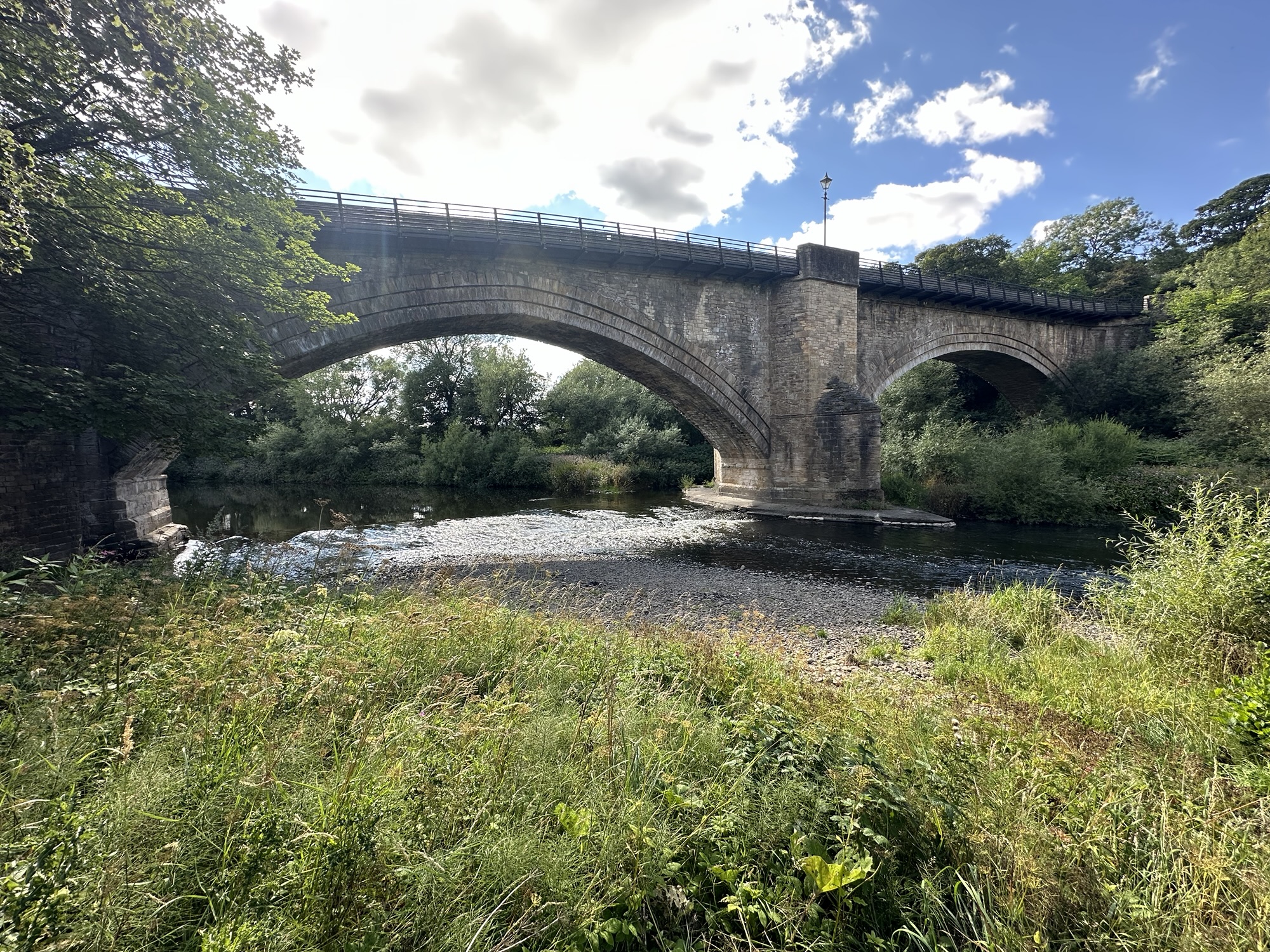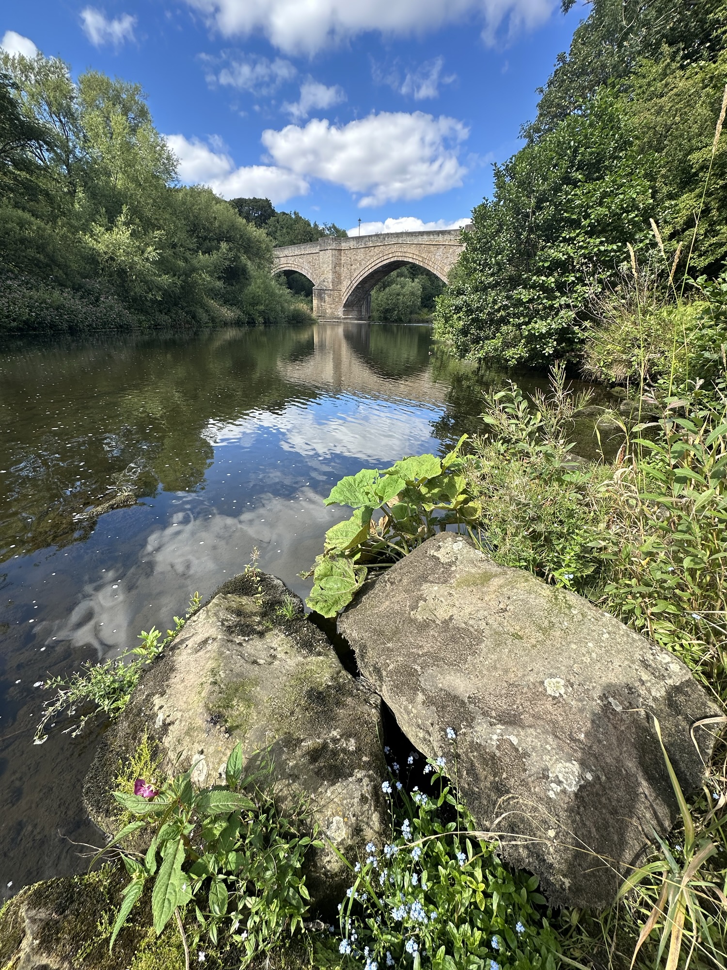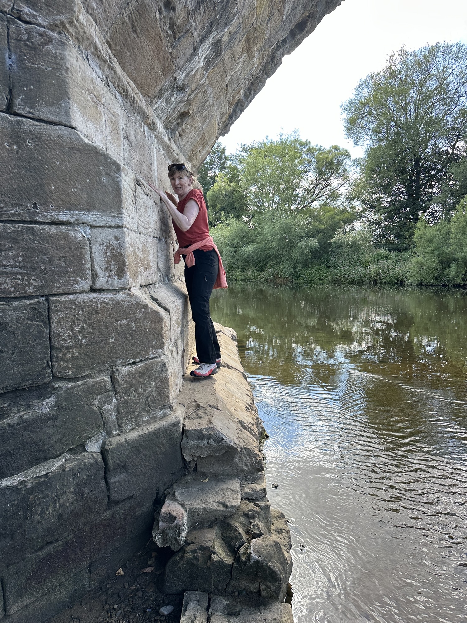 This time, Eric and Christine dropped us at the little village of Witton le Wear and we followed the footpath along the banks of the Wear and through woodland into Bishop Auckland. As we approached Bishop we ended up slightly ‘off piste’ which resulted in some scrambling down steep banks and negotiating narrow ledges under bridges.