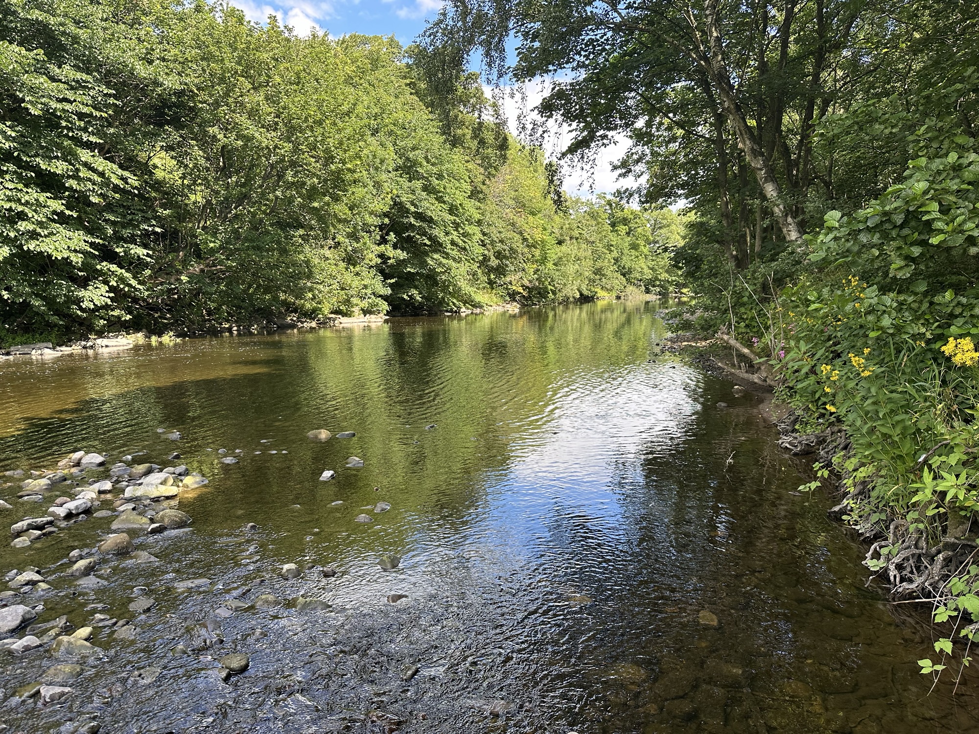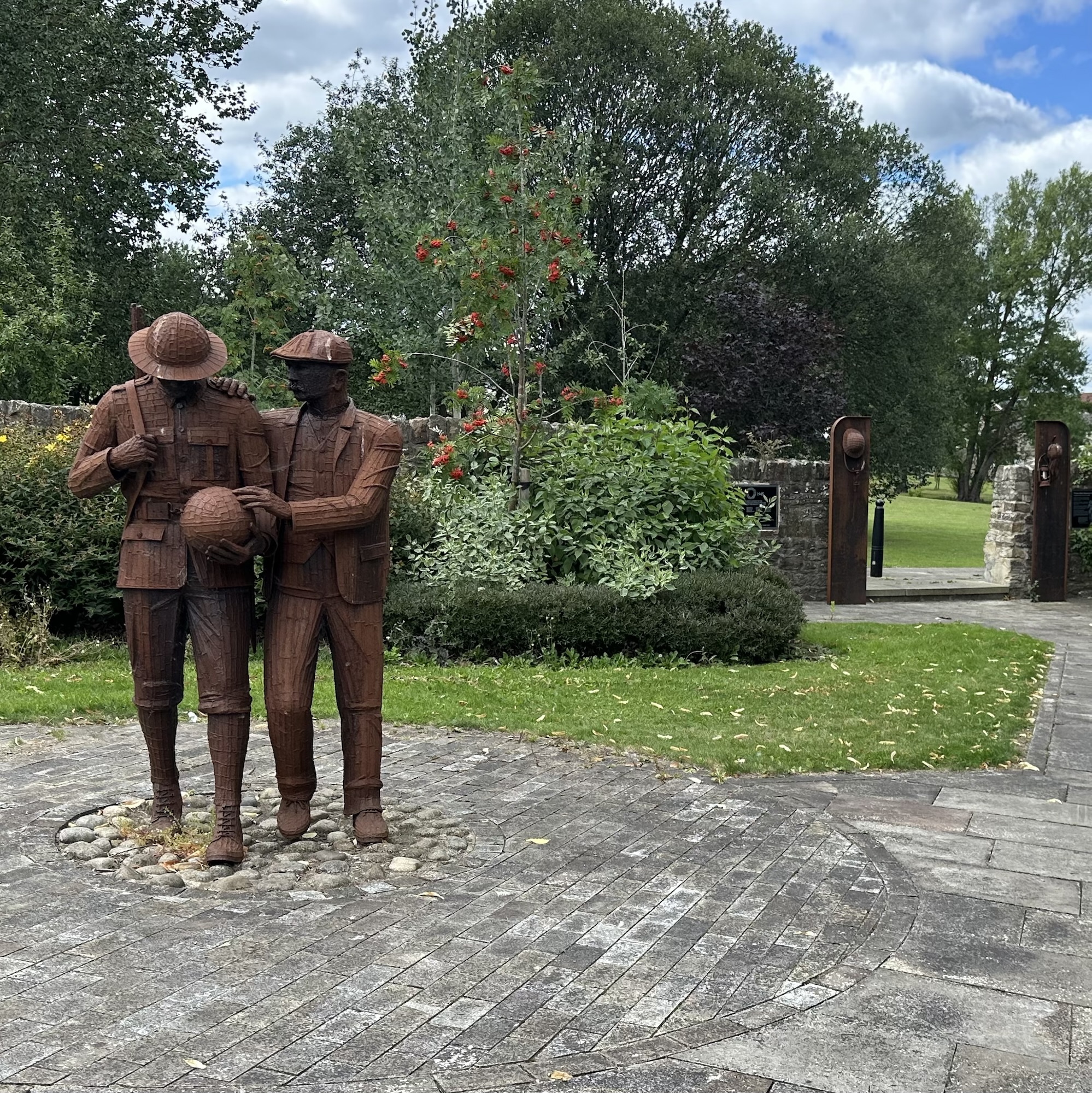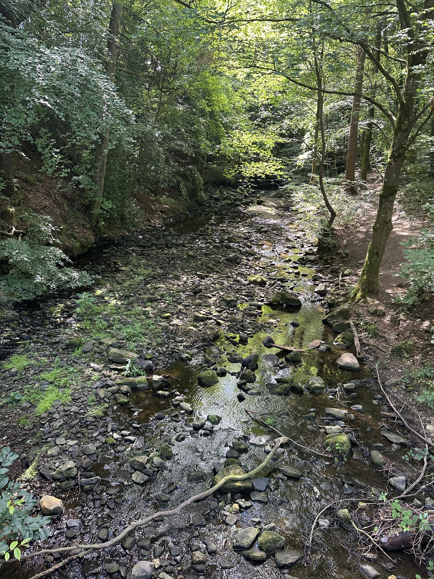 This time, Eric and Christine dropped us at the little village of Witton le Wear and we followed the footpath along the banks of the Wear and through woodland into Bishop Auckland. As we approached Bishop we ended up slightly ‘off piste’ which resulted in some scrambling down steep banks and negotiating narrow ledges under bridges.