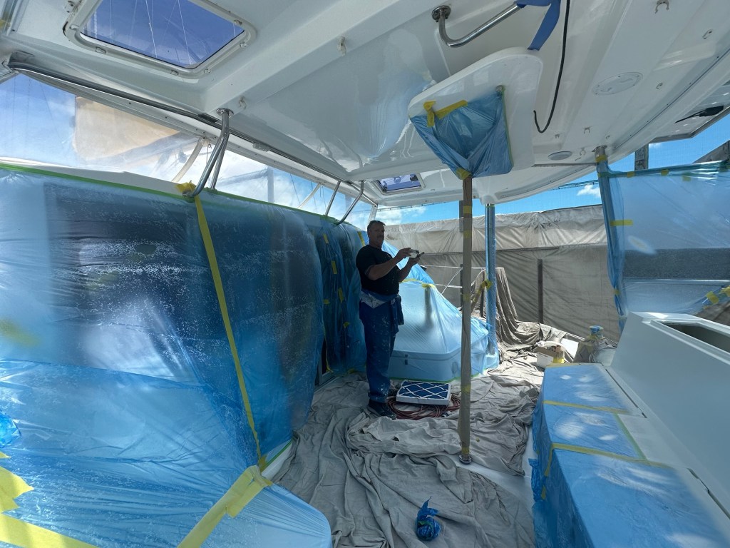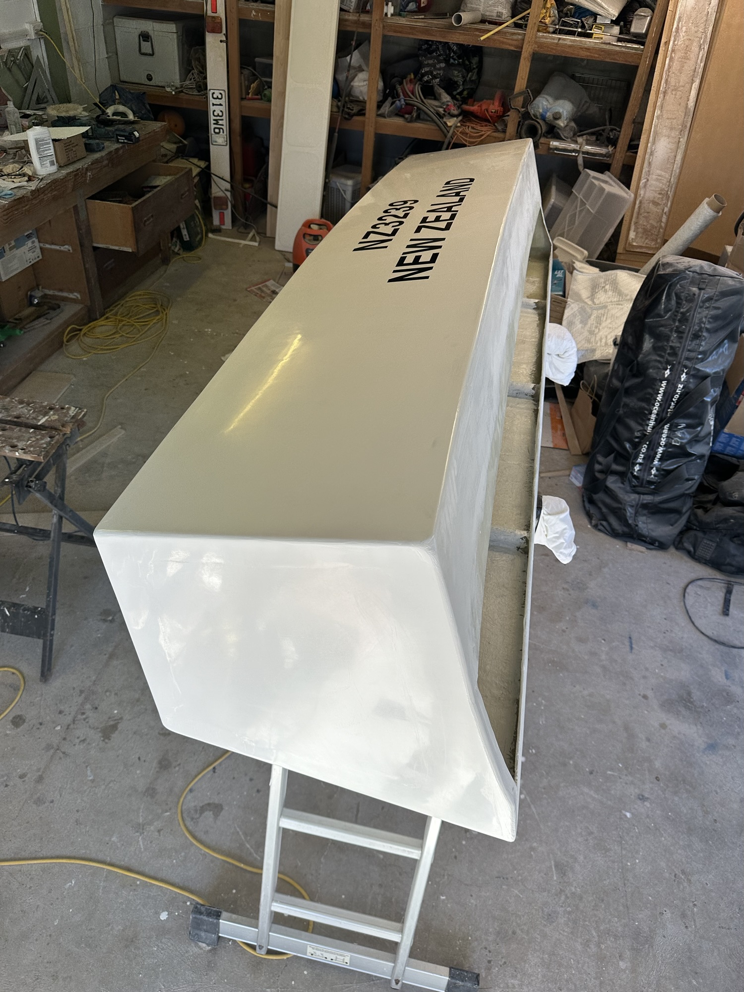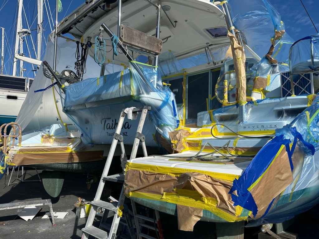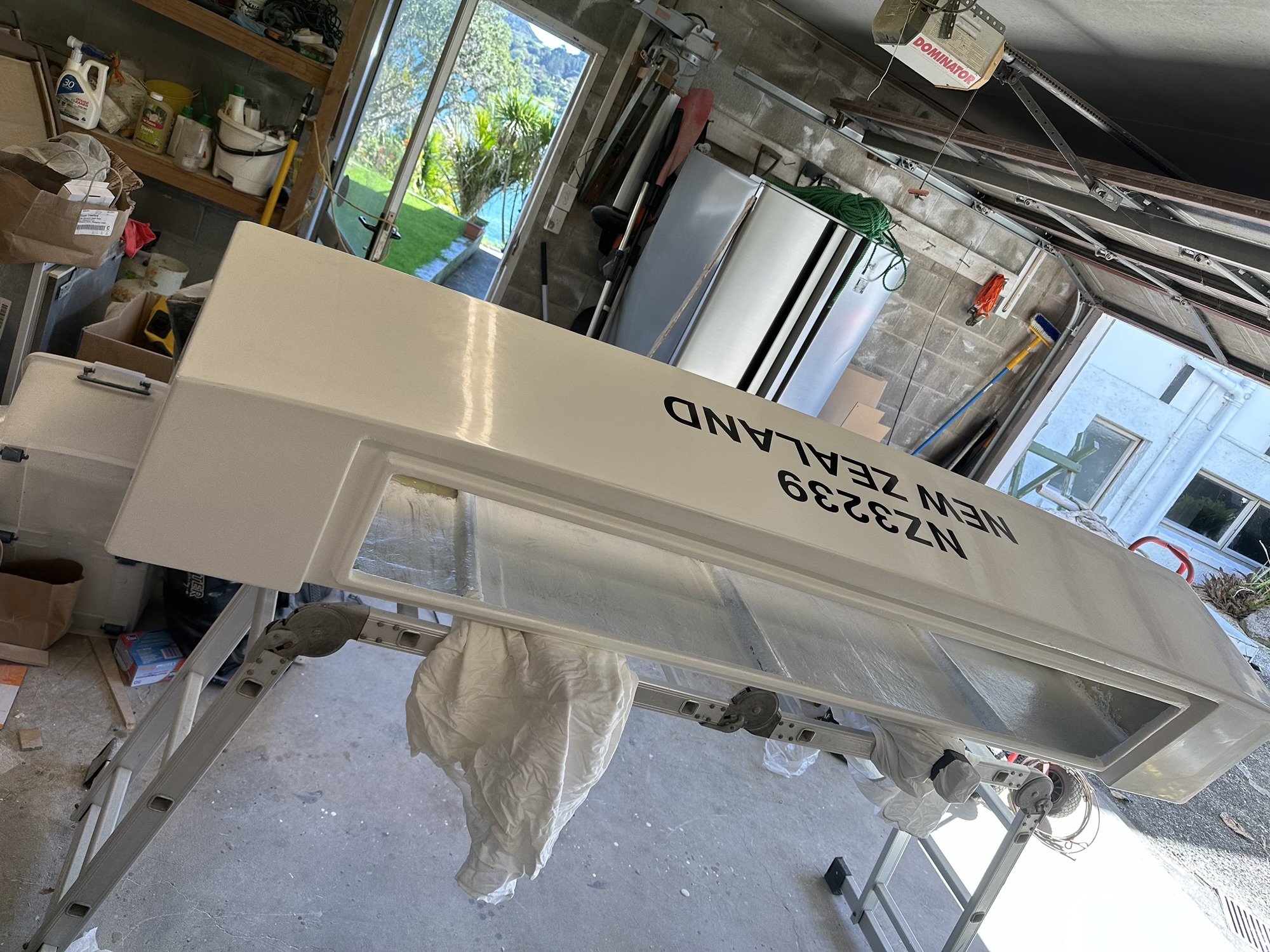 This involved Nigel grinding back all the gelcoat so that Brent and his team could add fibreglass reinforcement and spray new gelcoat.