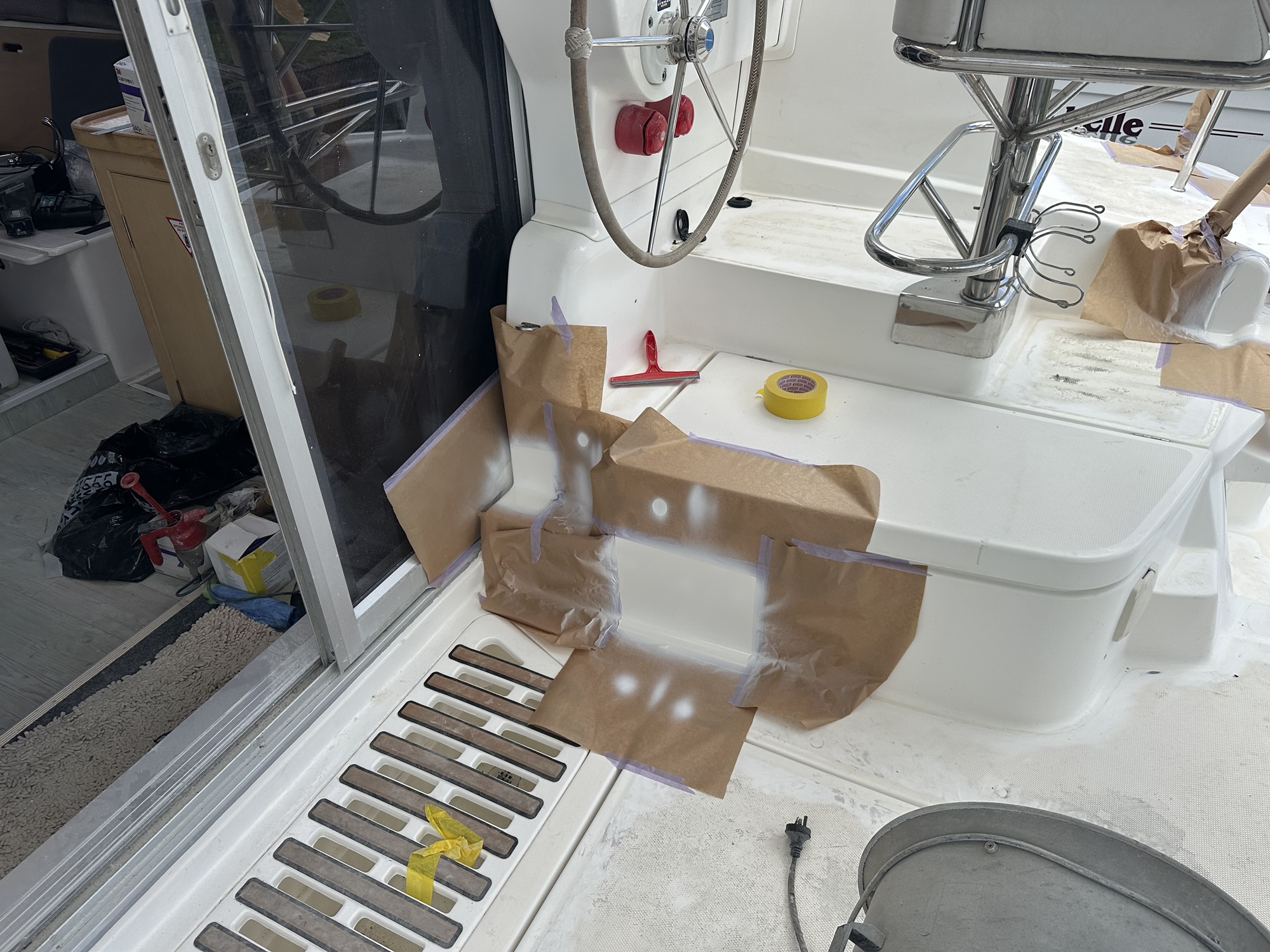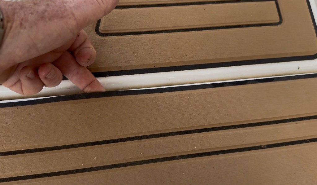The second issue discovered after the U-deck was removed was that the glue had stained the gelcoat. This became an issue when we decided to make the new U-deck panels slightly smaller to provide larger channels for water to run overboard.