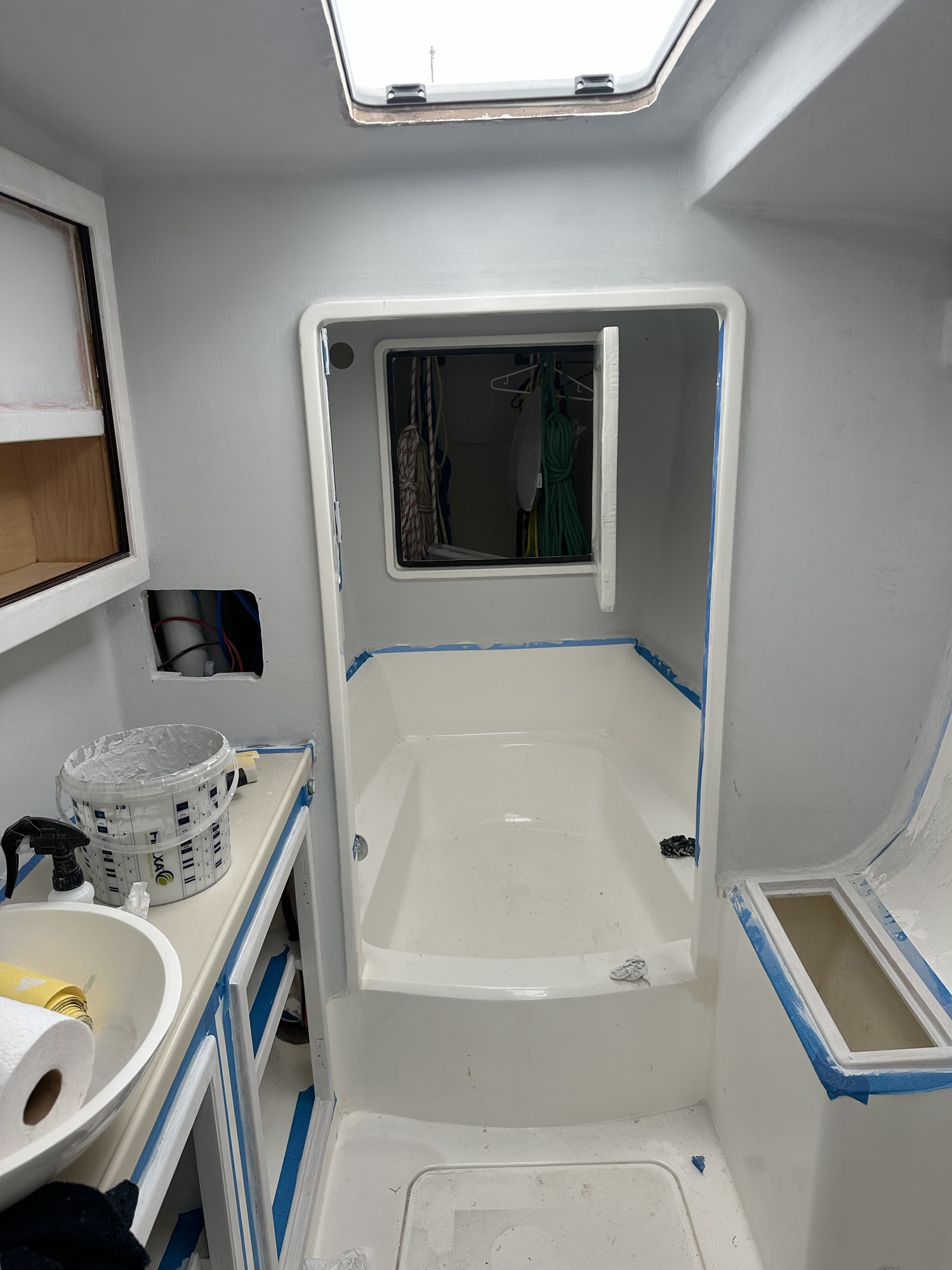 We had a leak around the porthole in our shower. Once we took it out we discovered that it had not been installed properly. The hole was too big. Abel Marine to the rescue. The hole was modified and the porthole reinstalled.