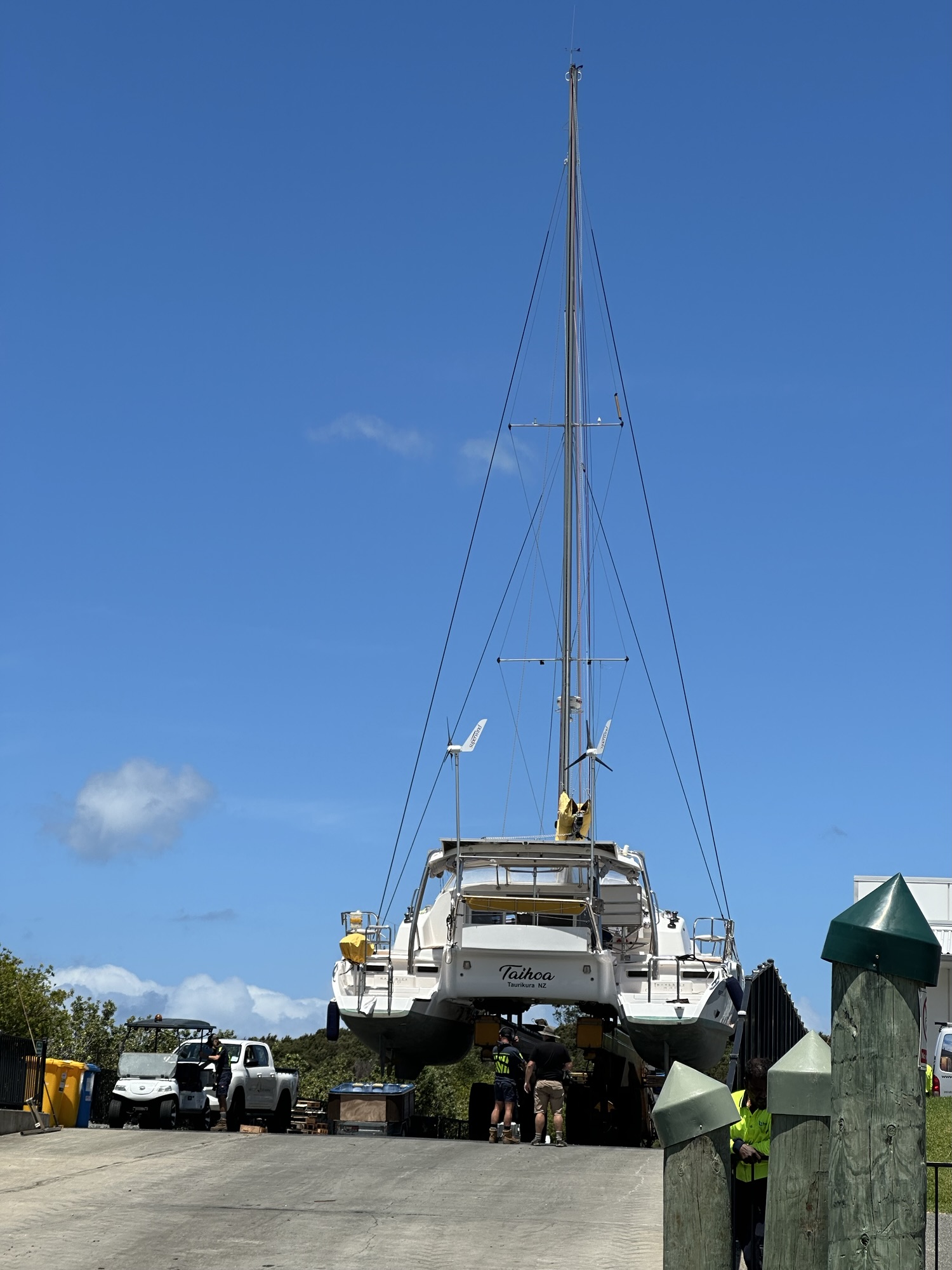 We knew that Taihoa needed to come out of the water. She had not been moved since we went to the UK at the beginning of May and the hulls were beginning to resemble a floating reef – mostly barnacles and tube worms.