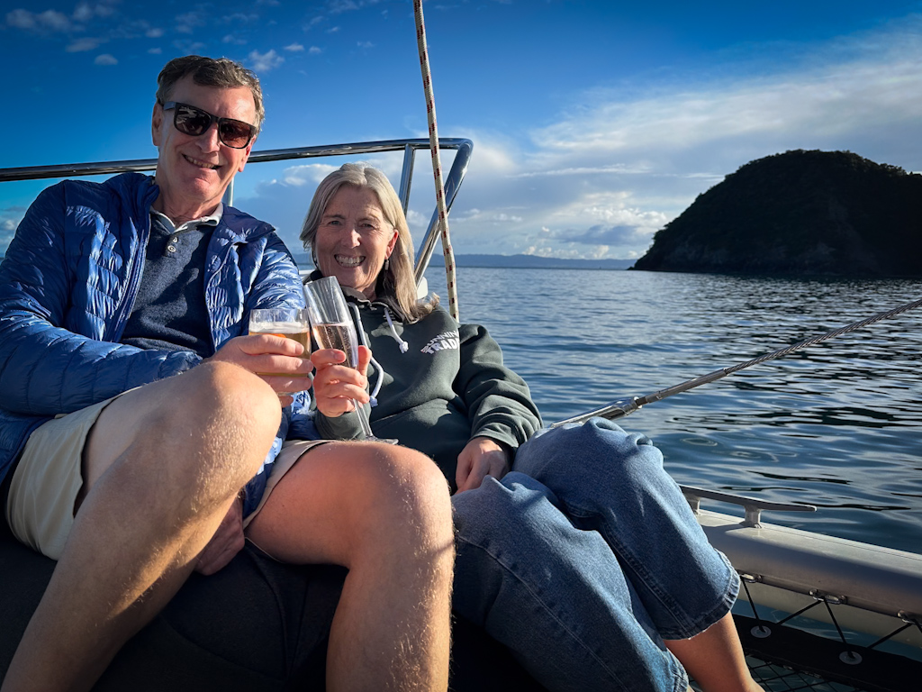 A few messages and calls later we had discovered that Claire and Ian were in Auckland to visit their daughter and new grandson. They only had small window in which to visit us but would love to go out on the boat.